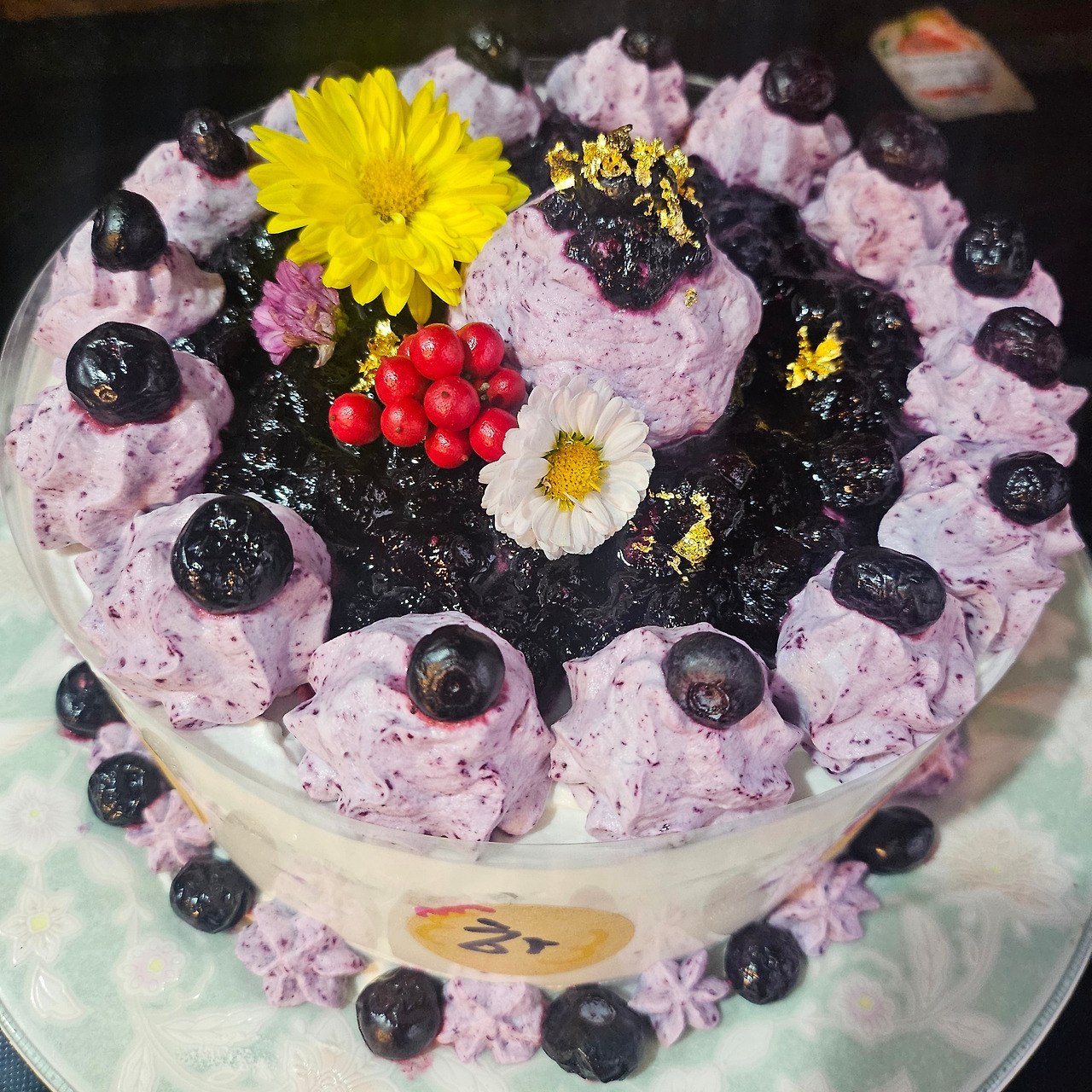 테두리는 남은 시럽을 채로 걸러 생크림과 섞어만든 보라크림이 짤 주머니에 담겨 고깔 모양으로 둘러쳐질 것이다.