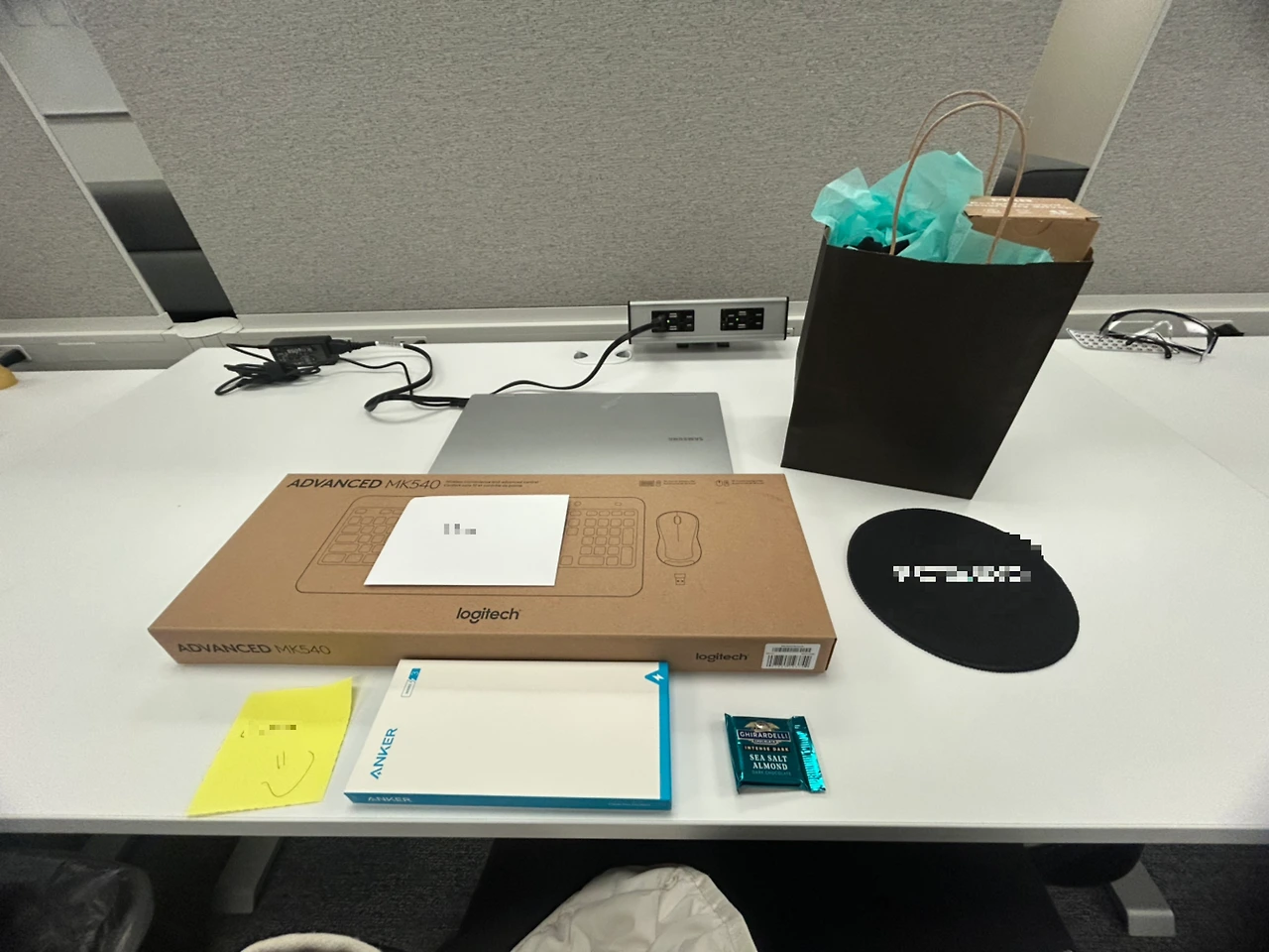 업무에 필요한 물품에다가 회사 티셔츠, 그리고 회사 로고가 박힌 텀블러까지 제공받았답니다.