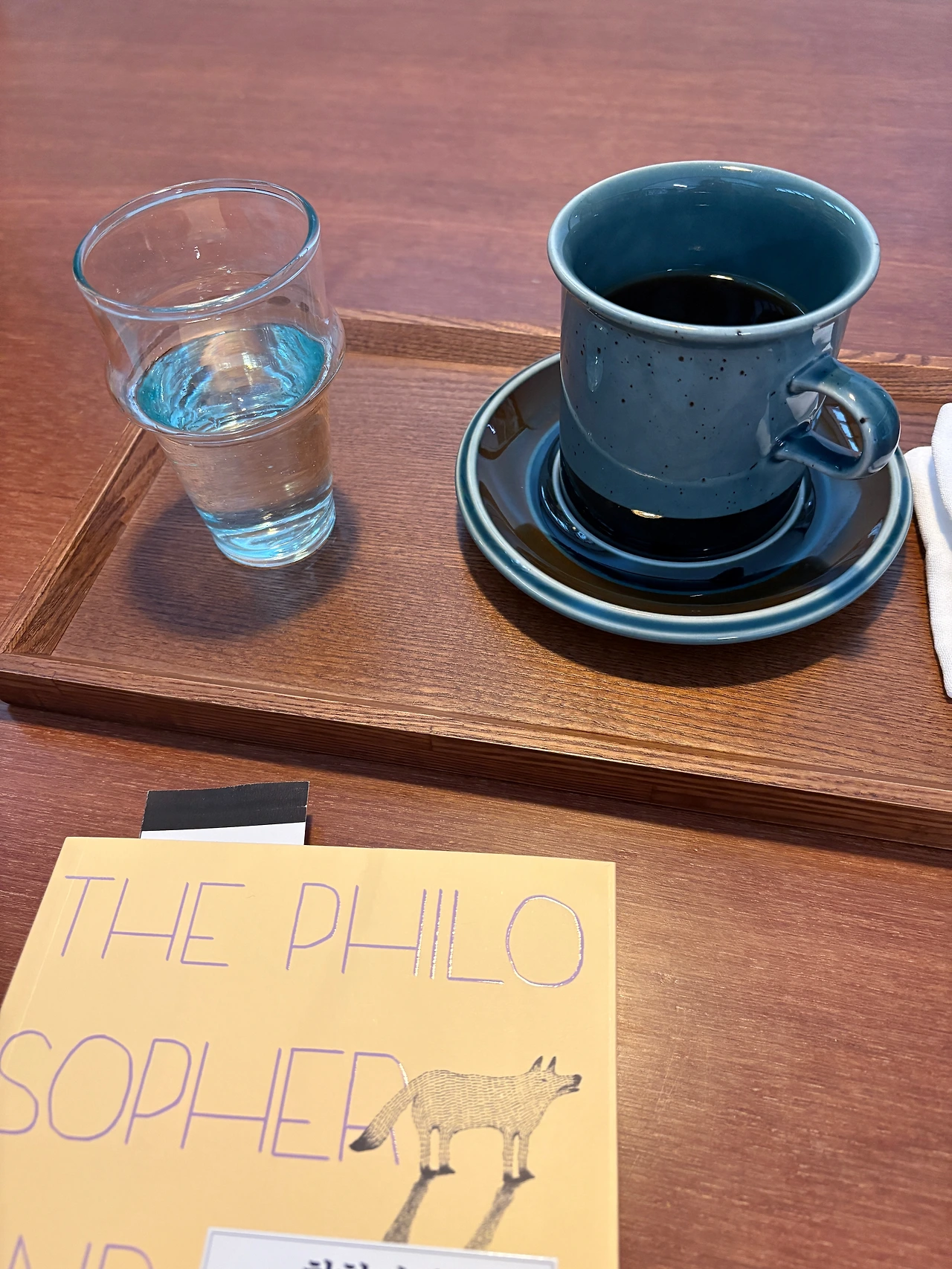 사장님이 커피를 내오셨다. 커피잔은 아라비아핀란드, 내가 좋아하는 블루 계열의 채도 낮은 색과 갈색으로 이루어진 잔이다. 오늘 오전 일은 내가 원하는 대로 되지 않았지만 덕분에 나는 좋아하는 북카페에 앉아 책과 커피로 마무리가 할 수 있다. 커피도 맛있고, 방금 구매한 책을 50페이지 정도 읽는데 이 순간이 아쉽다.