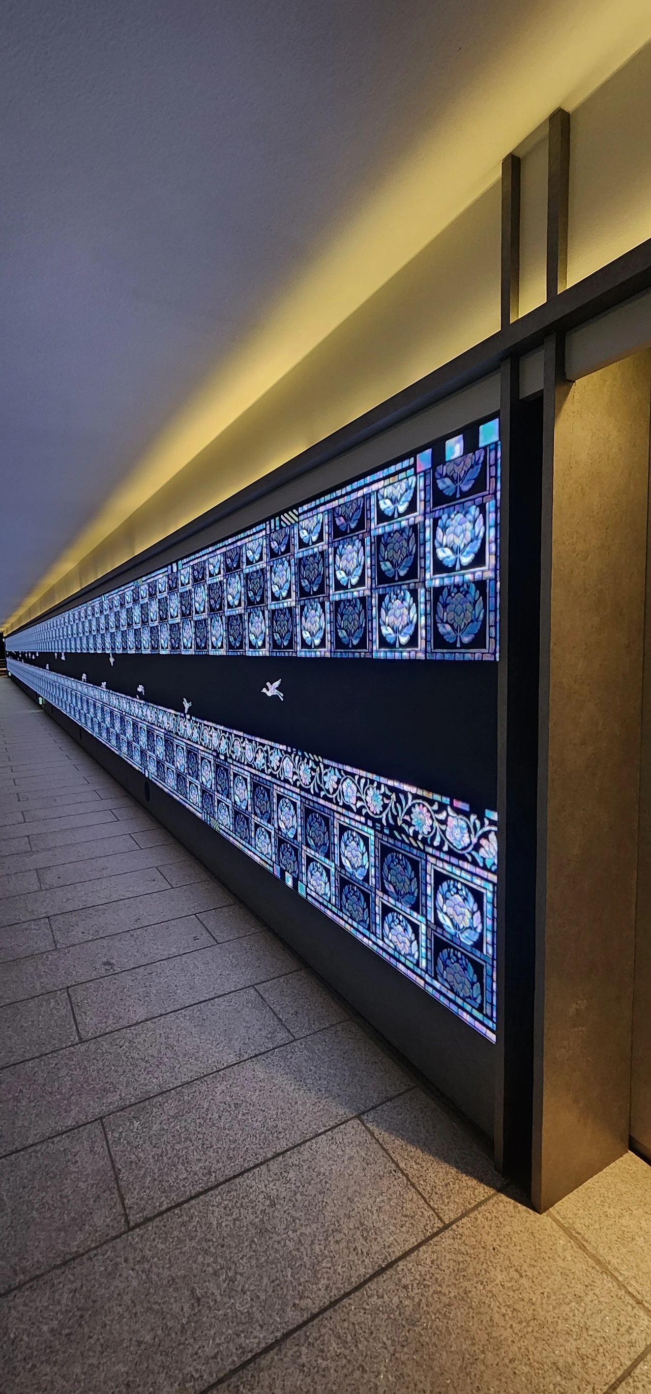 대안으로, 버스로 이동해 경복궁에 있는 국립고궁박물관을 찾았다. 박물관에 가려면 경복궁의 광화문과 흥례문 사이에 용성문을 지나도 된다. 지하철역 3호선 경복궁역 5번 출구에서도 박물관을 찾을 수 있다. 지하철역인 경복궁역에서 걸어오면 불로문과 국립고궁박물관 이음길을 지난다. 오늘은 이음길에서 자개 영상이 나를 붙잡는다.