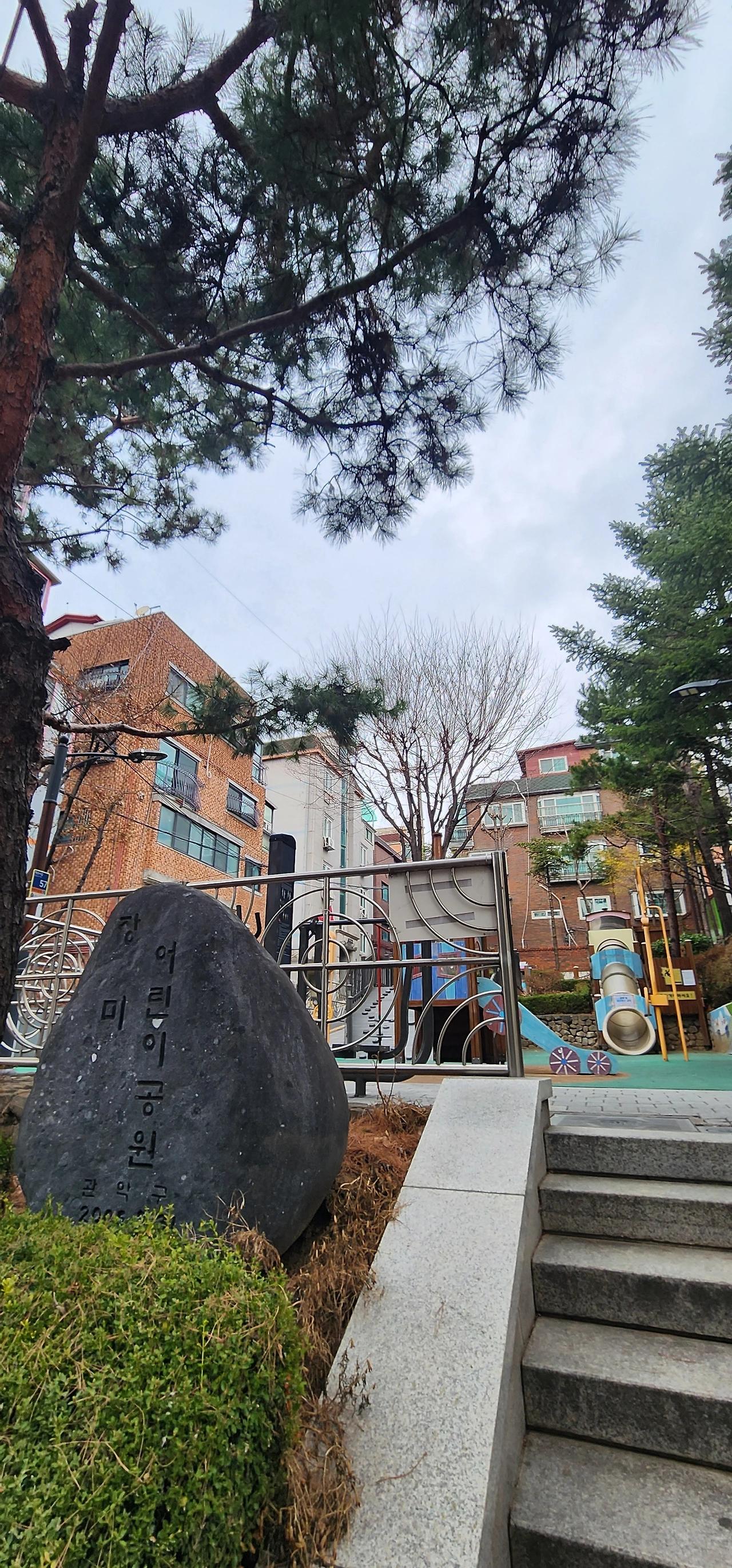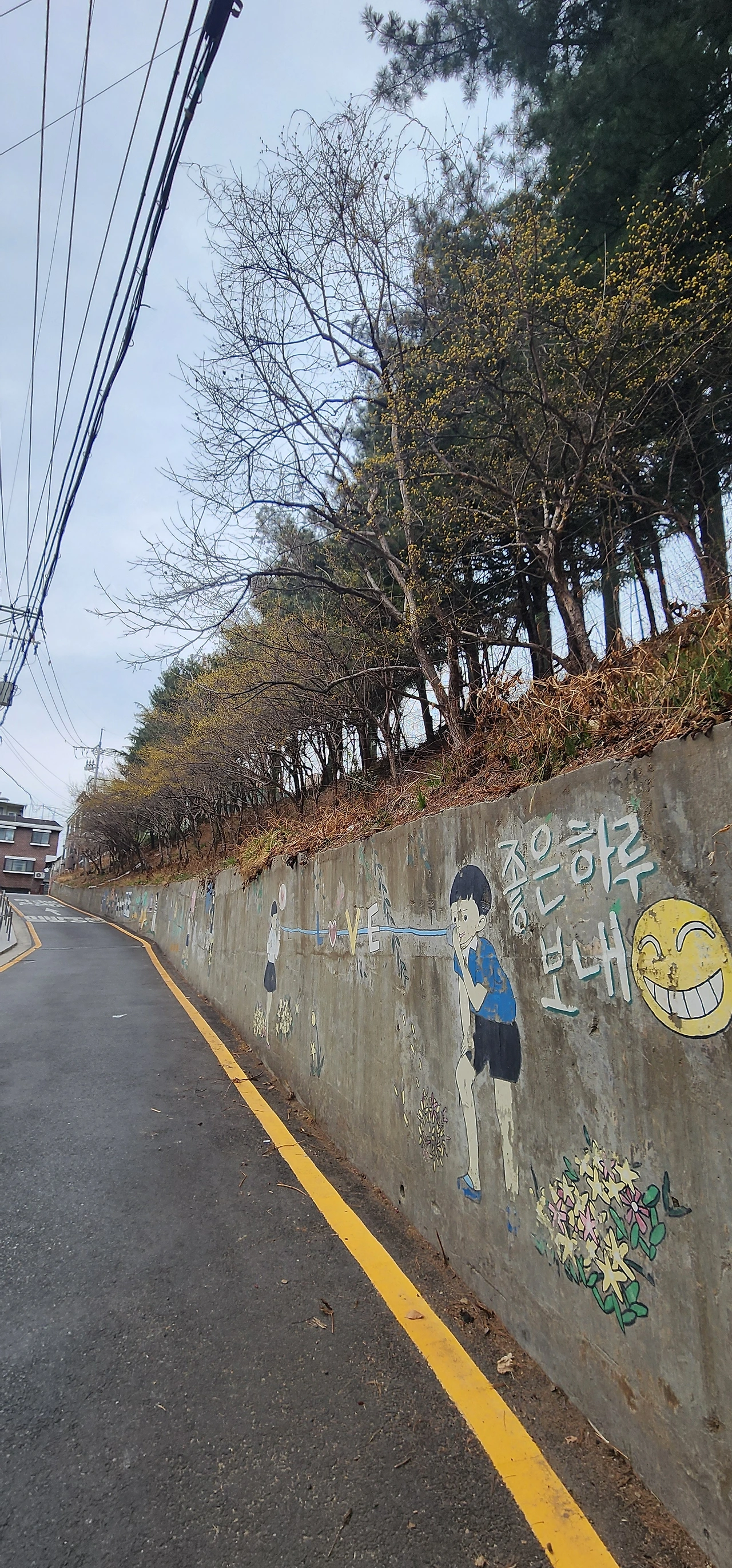 오후에 광명에 있는 코스트코에 갔다가 행운동에서 오후 늦게 잠깐 걸었다. 행운동 골목에 공원이 두 개 있다. 장미어린이공원 그리고 까치어린이공원이 있다. 두 공원 사이에는 행운동성당이 있다. 성당은 부근에서는 사진 찍을 명소다. 그리고 행운동성당 옆에 관악중학교가 있다. 관악중학교로 오르는 오르막길의 코너에 벽면에 작은 글씨로 '행운동 고백길'이라 안내한다. 행운동 벽화거리라고도 한다.