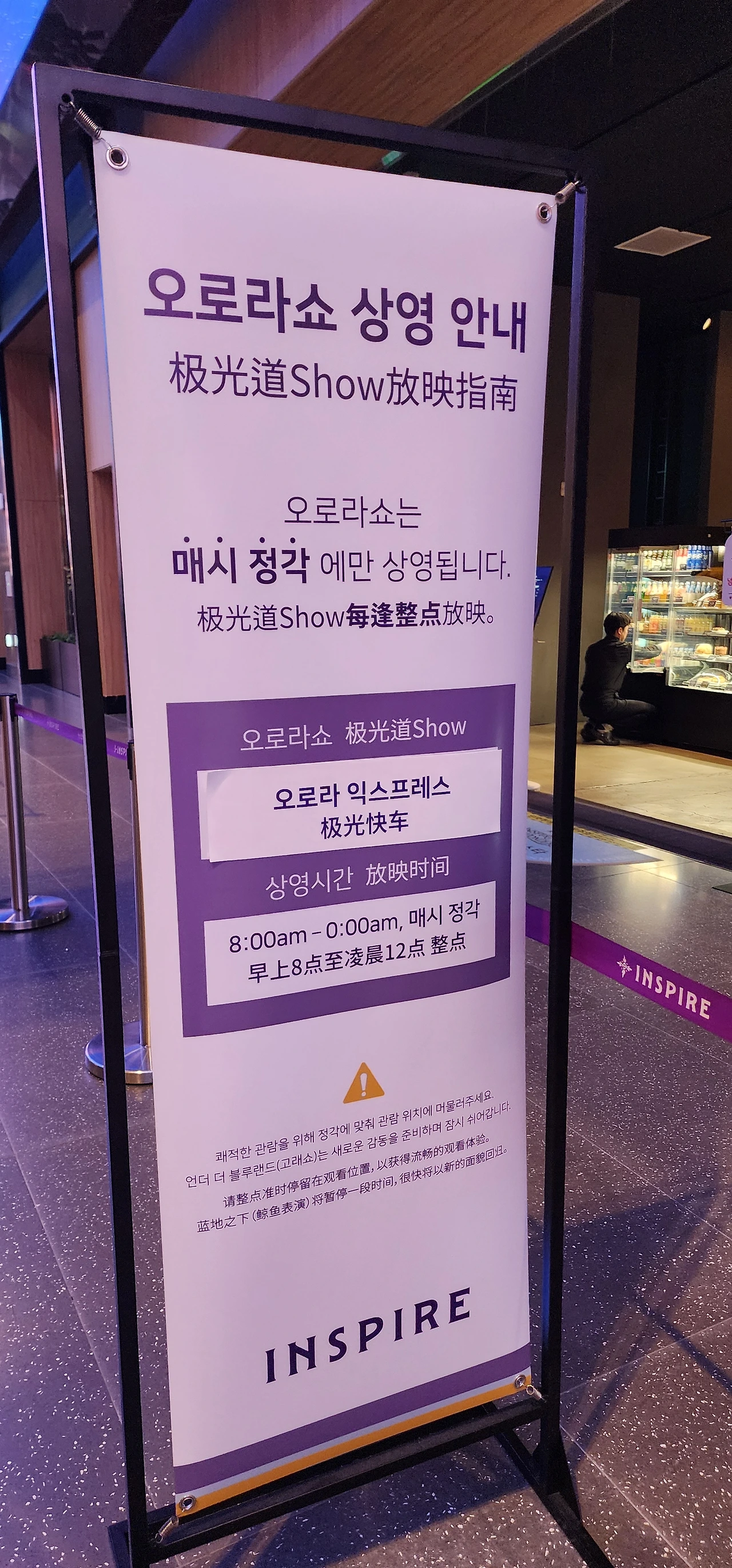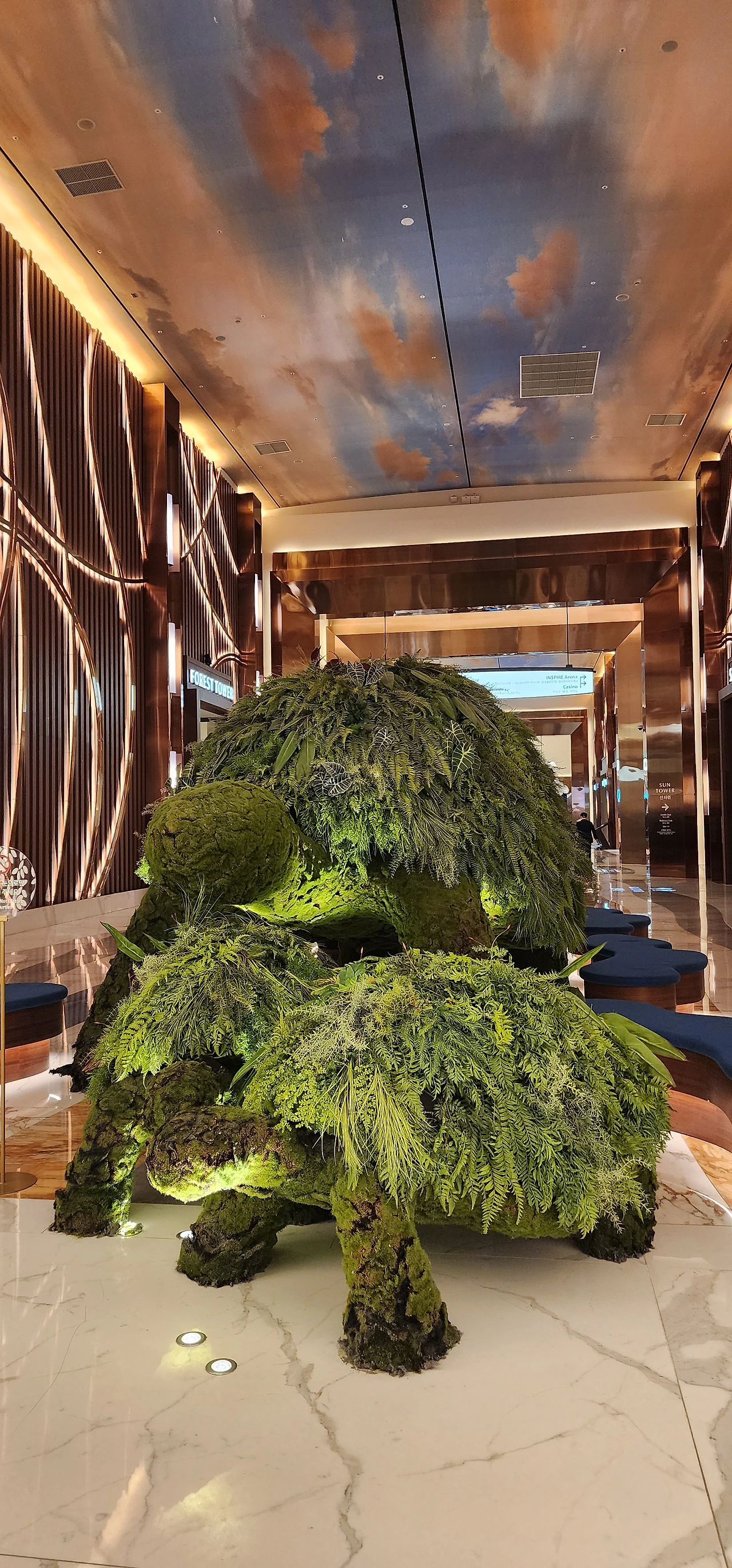 영종도의 을왕리 부근인 인스파이어리조트는 수요일이라 그런지 한산했다. 꼭 보고 싶었던 로비 천장의 영상은 오로나쇼로 4분 정도 진행되었다.