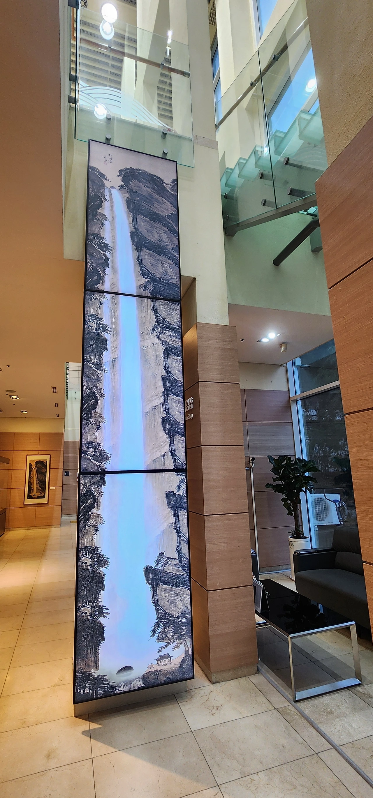 미술관 이층에는 정선 작품이 전시되어 있는 겸재정선기념실과 원화전시실도 보인다. 한층 더 올라가면 3층에 카페가 있다. 유리창 밖의 비 내리는 풍광을 즐기기 위해 2천 원짜리 쌍화차를 마시며, 겸사겸사 비가 그치기를 기다려본다. 그런데 비가 그칠 기색이 없다. 강서문화산책길을 다음으로 미루고 온 길로 되돌아 양천향교역에 도착했다. 오늘의 서울 여행은 겸재정선미술관으로 대체하고 강서문화산책길은 다음에 다시 찾기로 했다.