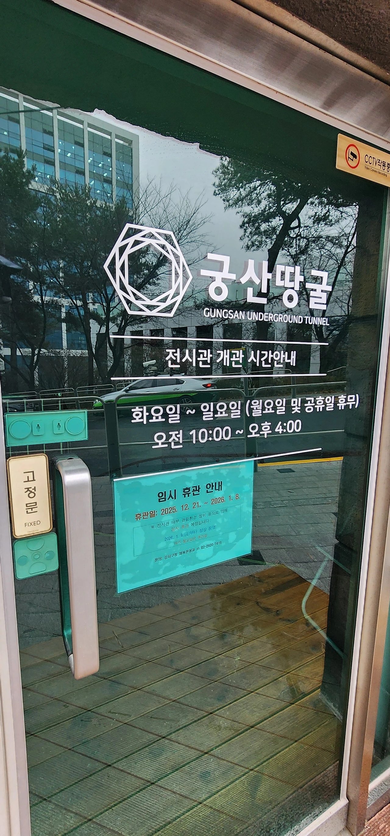 그리고 그 옆에 궁산땅굴이 있다. 아뿔싸. 21일부터 공사라 입장이 불가하단다. 길 건너 겸재정선미술관이 보인다. 궁산으로 올라가야 코스를 걷는데 비가 내리니 엄두가 나지 않는다.