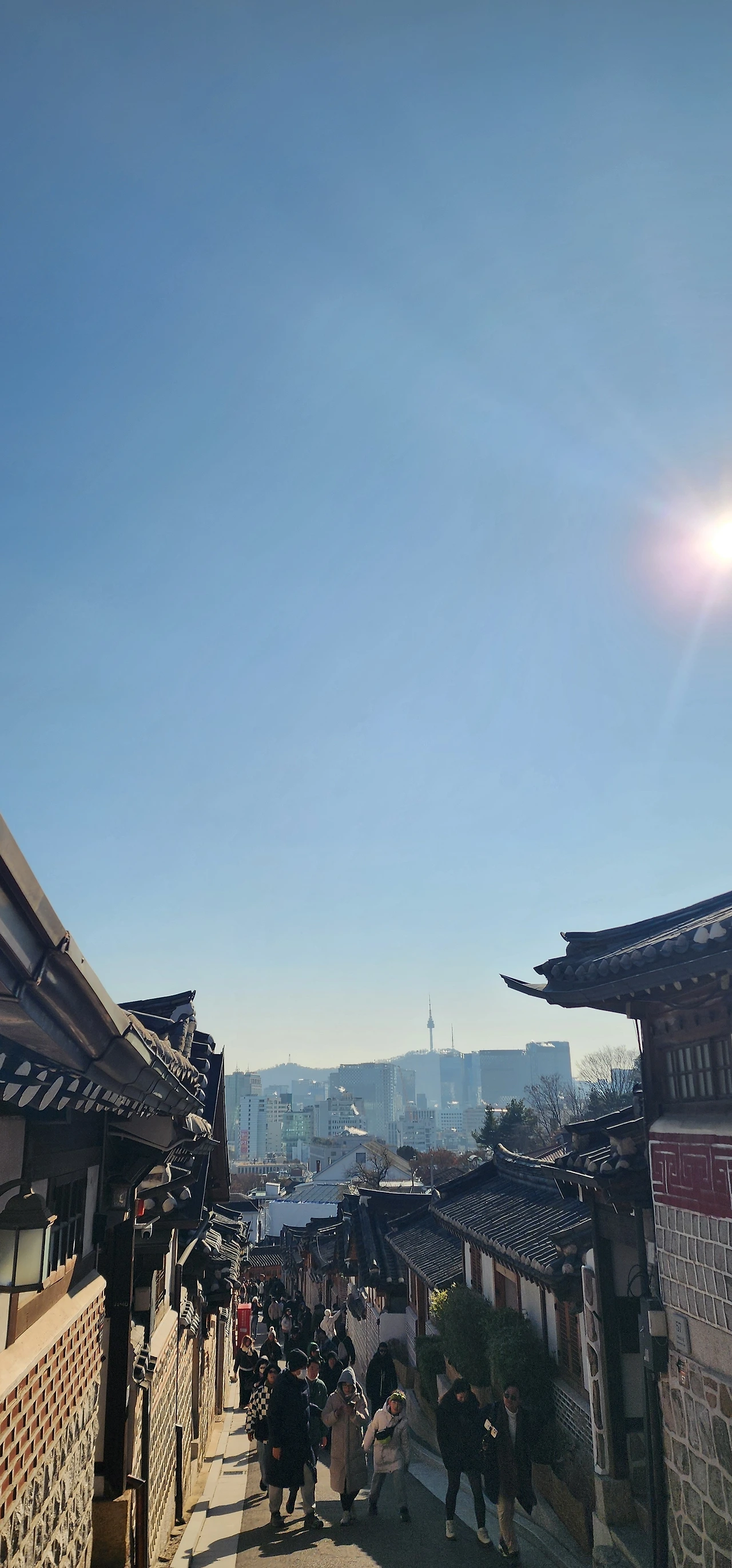 코스는 동집자각 앞에 있는 동십자각 지하보도 출구에서 시작한다. 경복궁 입구를 지나 길 건너의 국립현대미술관을 바라보며 삼청로를 걷다 보면 건춘문을 지난다. 국립민속박물관 정문을 지나면 삼청동 입구가 보인다. 청와대로를 살짝 찍고, 삼청동 입구에 들어서면 독특한 차량이 전시되어 있다. 북촌로 골목을 들어가면 외국 관광객이 많다. 지나다니는 사람들만 보면 외국여행을 하는 분위기다. 세계장신구박물관을 지나면 북촌 한옥마을로 올라간다. 복정우물, 북촌전망대를 지나면 외국 관광객으로 가득한 골목을 북촌의 핫플레이스가 등장한다. 언제나 관광객이 많은 지역이다. 며칠간 기온이 급강하하여 커다란 고드름도 달려 있다. 주민거주지이니 소곤소곤 얘기해달라는 안내가 여기저기 있고 피켓을 들고 서 있는 안내원도 여럿 계신다. 가회동성당 앞에서 북촌로 길을 건너 다시 한옥골목으로 들어선다. 북촌전통체험박물관을 지나 언덕을 넘으니 중앙고가 나오고, 이제 안국역 방향으로 계동길 내리막을 걷는다. 가회동성당의 중국인 주문모 신부가 세례 성수로 사용했다는 석정보름우물이 부끄러운 듯 숨어있고 찾는 사람도 없어 보인다. 석정보름우물을 지나니 좁은 골목에 들어선다. 무언가 의미가 있을 듯한데, 찾지 못하고 북촌문화센터 앞에서 마무리했다. 오늘의 서울여행은 짧게 보냈다.