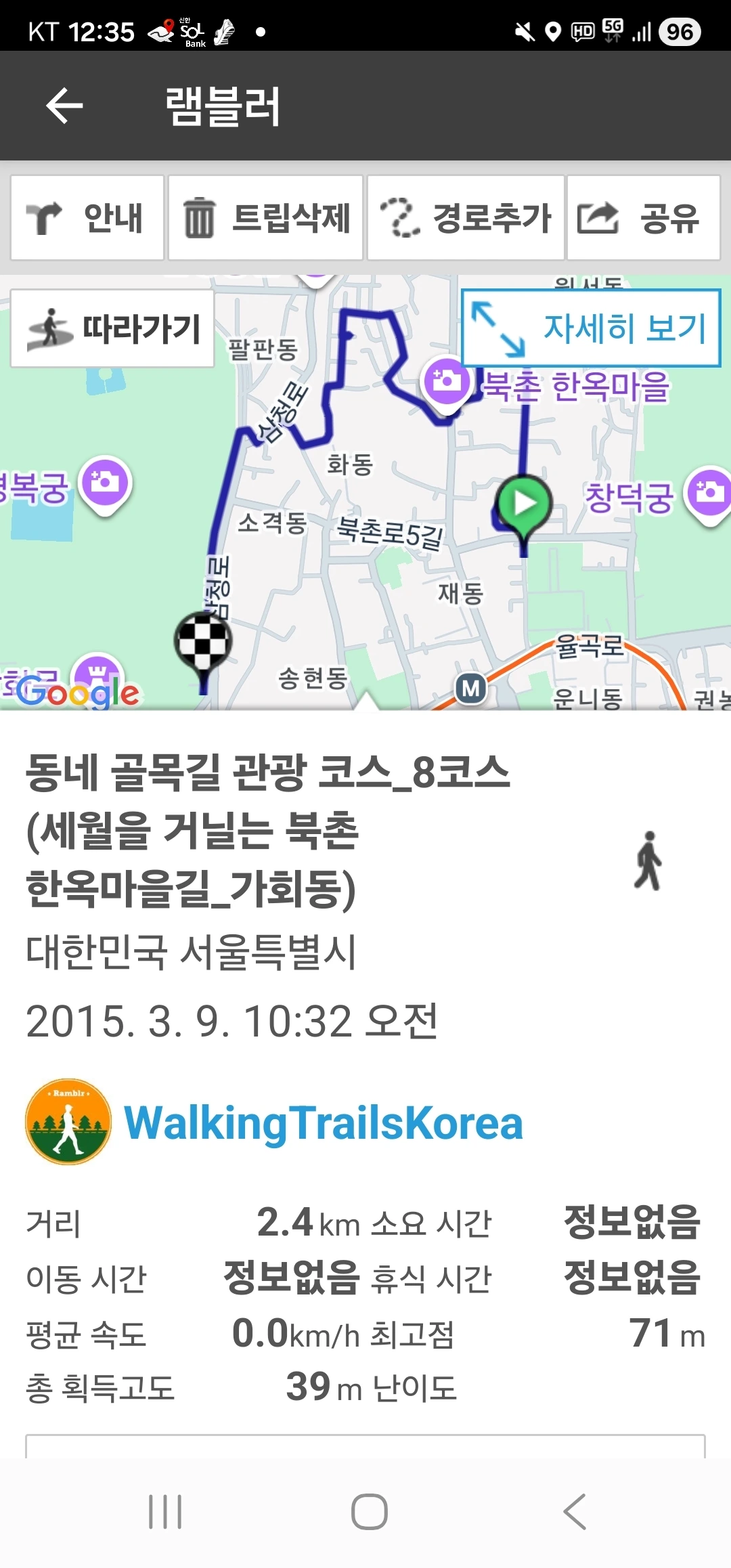 전일 해파랑길을 무리하여 걸은 후유증이 있어 가회동 짧게 걸었다.