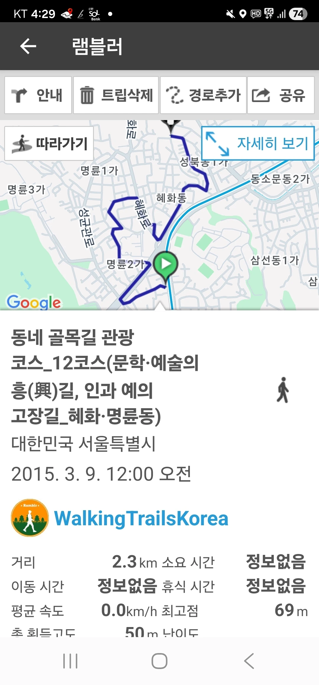 혜화동과 명륜동을 걷는 동네골목길관광은 12코스다. 코스의 별칭은 '문학•예술의 흥길, 인과 예의 고장'이다. 2.4km라 비교적 짧으나 기대만큼 볼거리가 많지는 않다. 아마도 주택가로 개발이 되어서 그런가 보다. 오늘은 역방향으로 걸었다. 2.4km로 30분이면 걷는다. 다만 원래는 종착점이며 오늘의 출발점까지 이동시간이 있으니 여유 있게 한 시간 예상해야 한다.