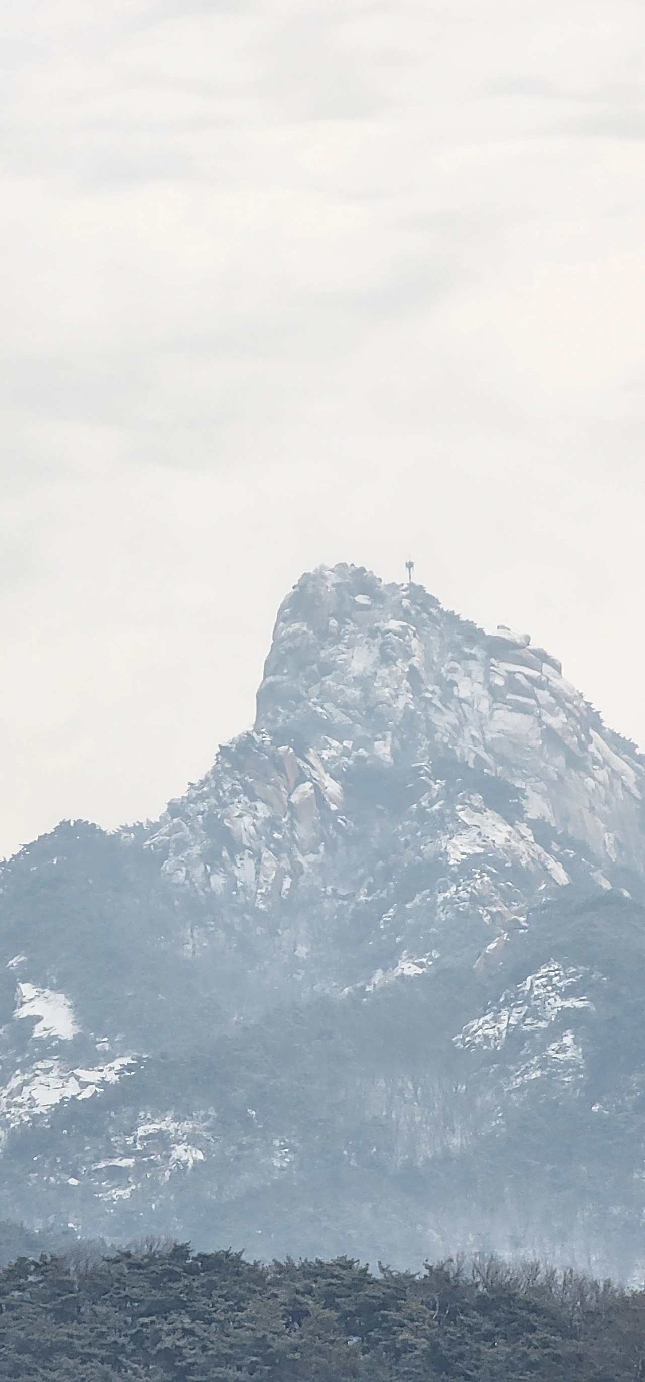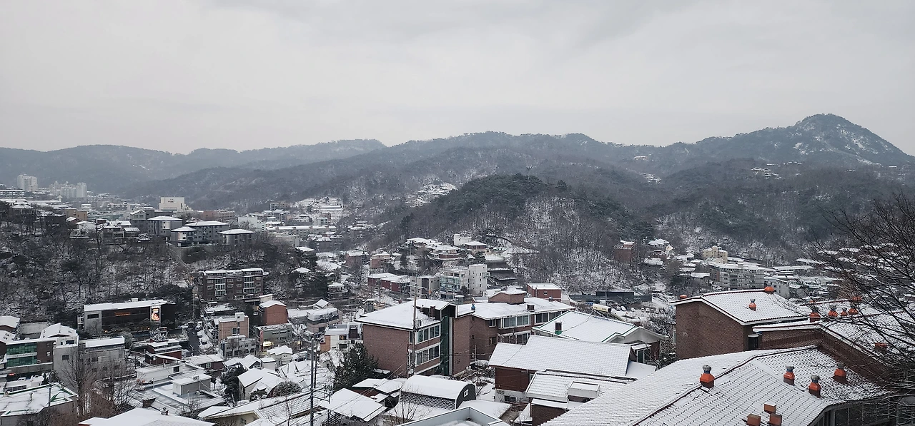 아침에, 밤이 눈이 내려 멋진 북한산를 보여주었다. 광화문광장에 가니 멀지만 북한산이 보인다.