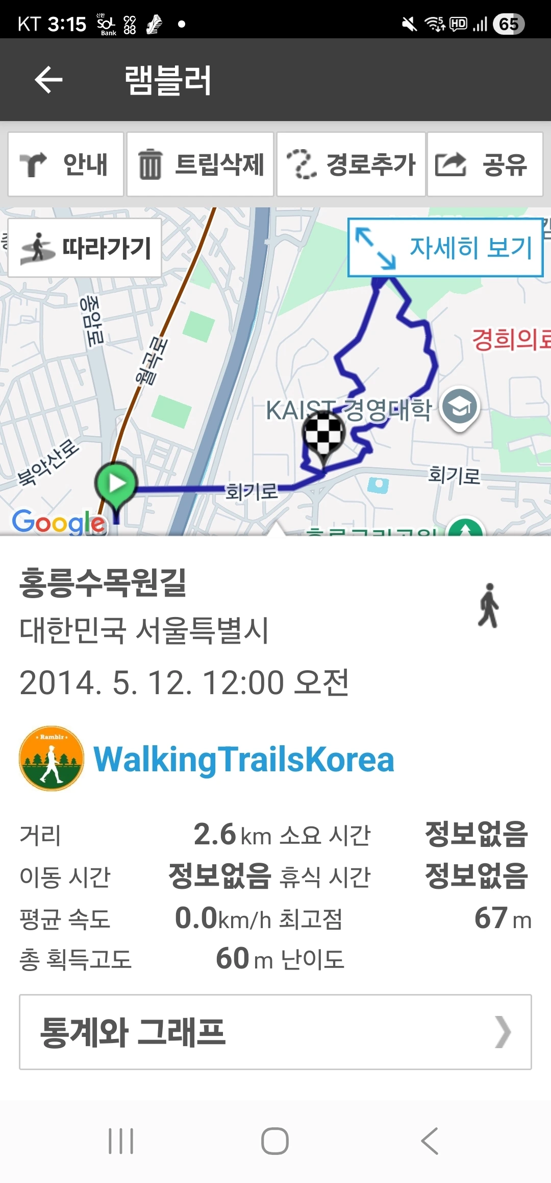 6호선 고려대역 3번 출구에서 출발한다. 고산자로에서 국립산림과학원, 홍릉숲 표지를 보고 회기로를 5분 정도 걷는다.