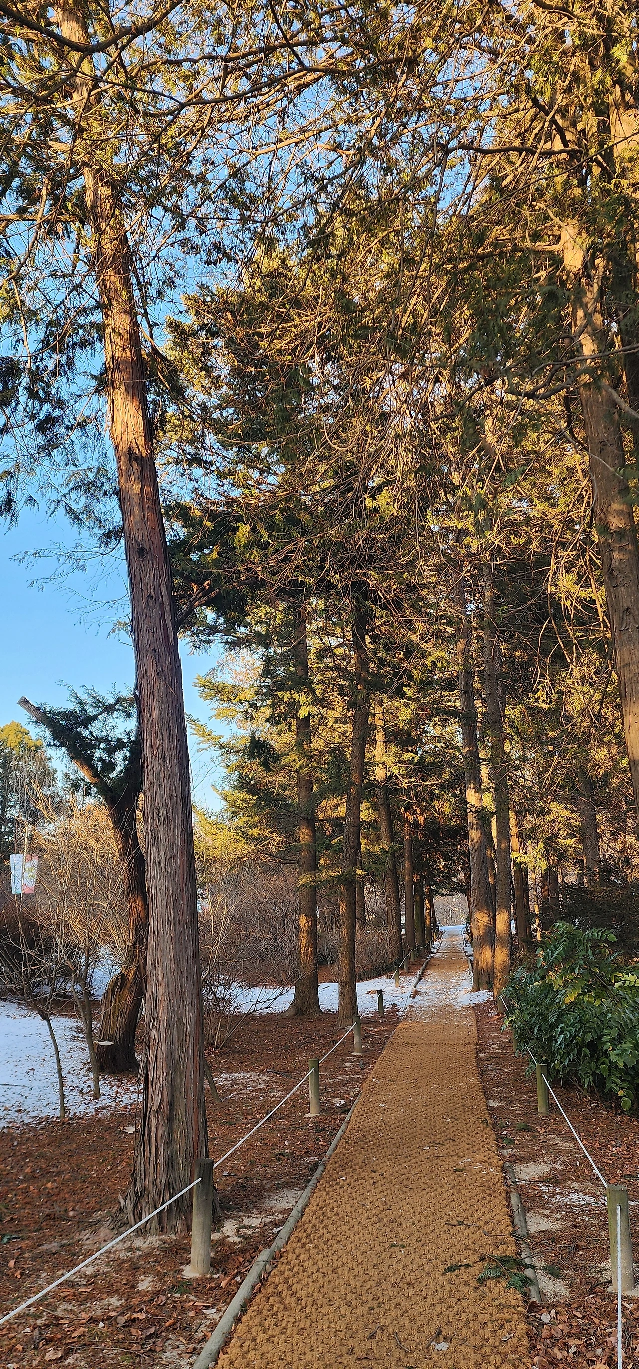 정문을 통과해 좌측으로 돌자 하얀 눈이 제법 쌓인 눈길이 기다린다. 덕분에 눈 쌓인 홍릉수목원을 걸었다. 홍릉수목원에서 코스를 걷다 보면, 북한산림수종전시원, 조경수원, 조경인의숲, 관목원, 침엽수원 등을 지난다. 무엇보다 홍릉수목원에는