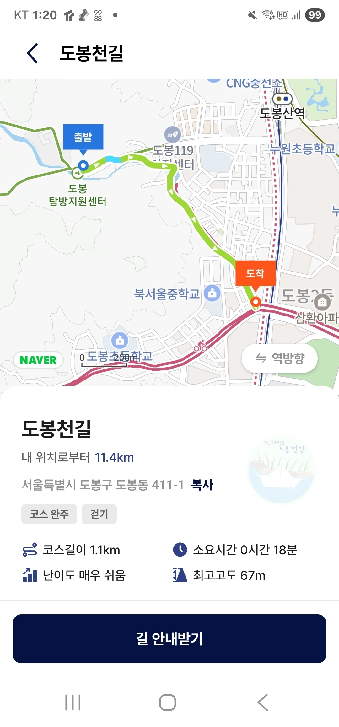 도봉천길은 도봉역에서 도봉천을 걸어 도봉탐방지원센터까지 걷는 1.1km의 짧은 코스다. 20분이면 걷는다. 도봉천도 걷기에 좋도록 산책로가 잘 조성되어 있다. 코스가 짧아 왕복했는데, 도봉산역에서 도봉탐방지원센터까지는 도봉천 옆의 오솔길인 흙길을 걸었다. 돌아올 때는 잘 조성된 하천의 산책로를 걸었다.