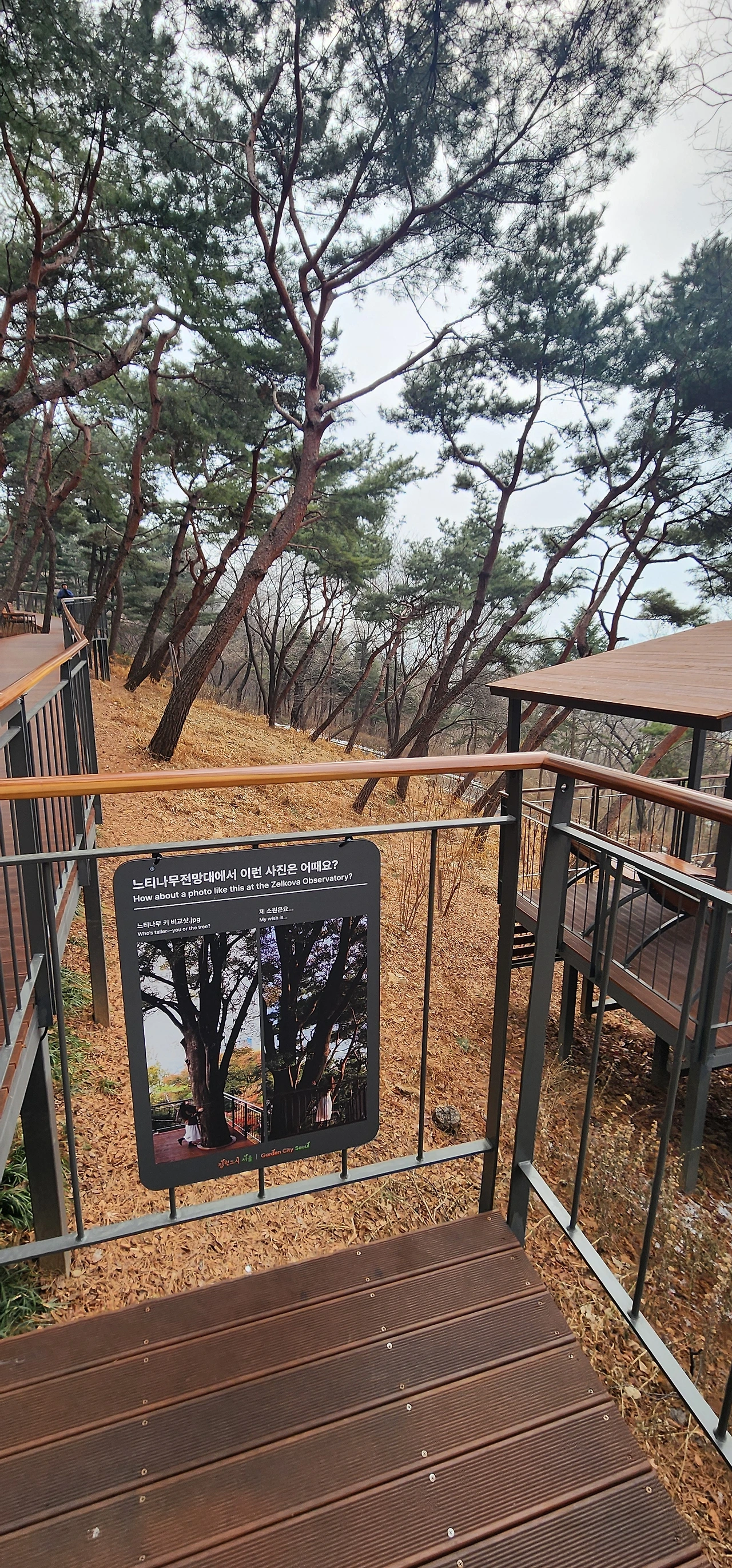 오후에 남산에 하늘숲길을 찾았다. 데크길로 남산도서관 입구에서 남산을 오르는 무장애코스이며 1.5km 남짓이다.