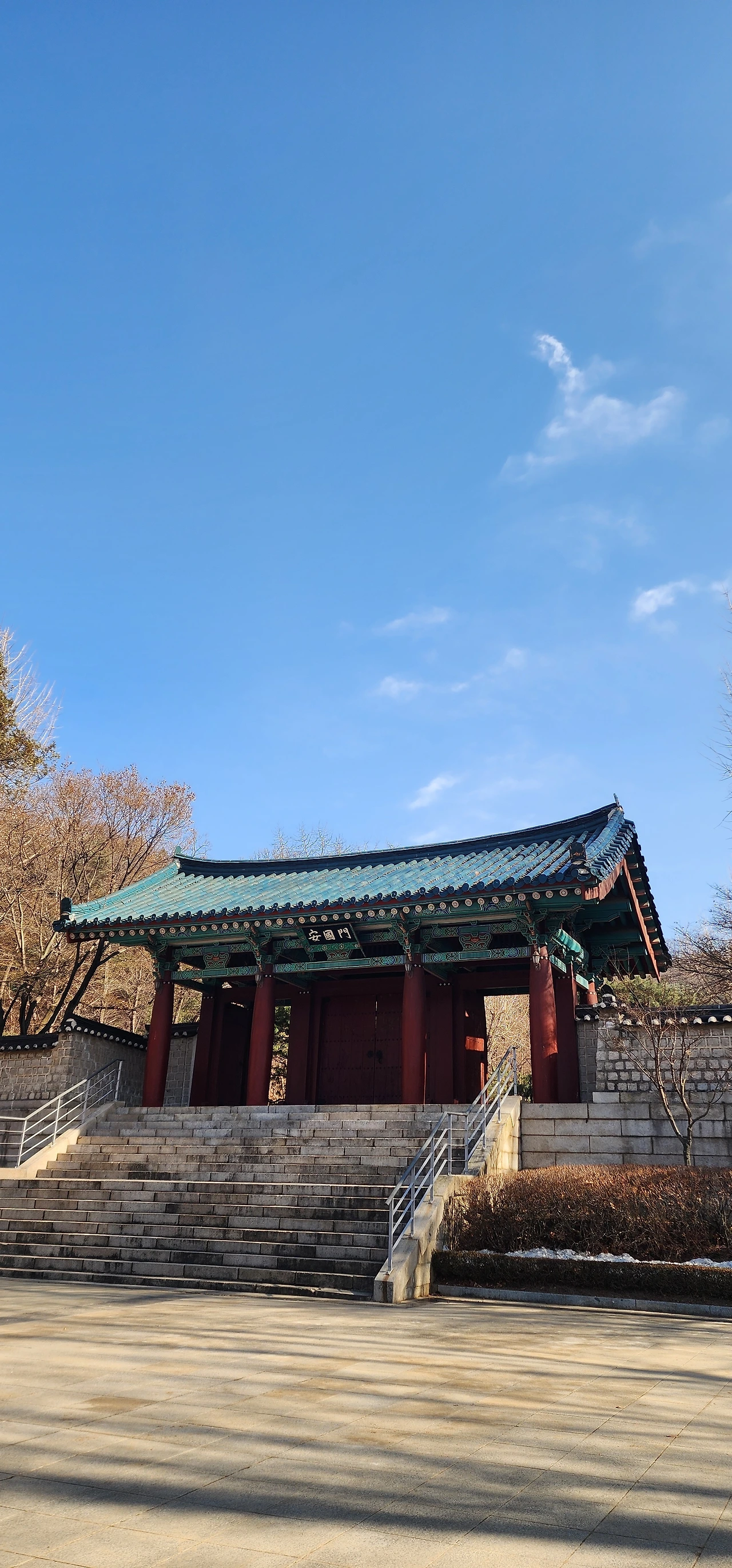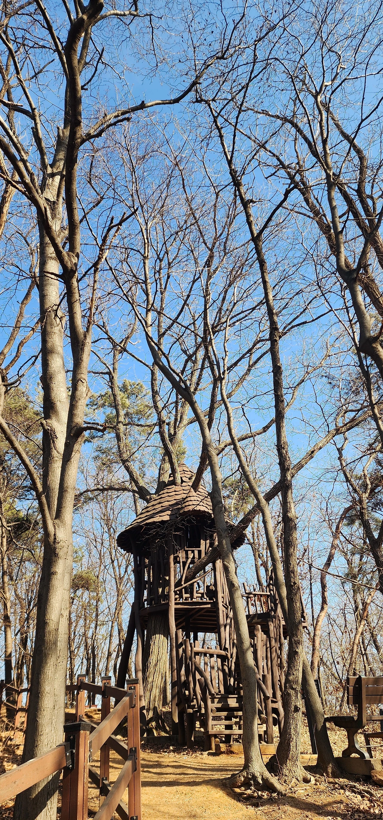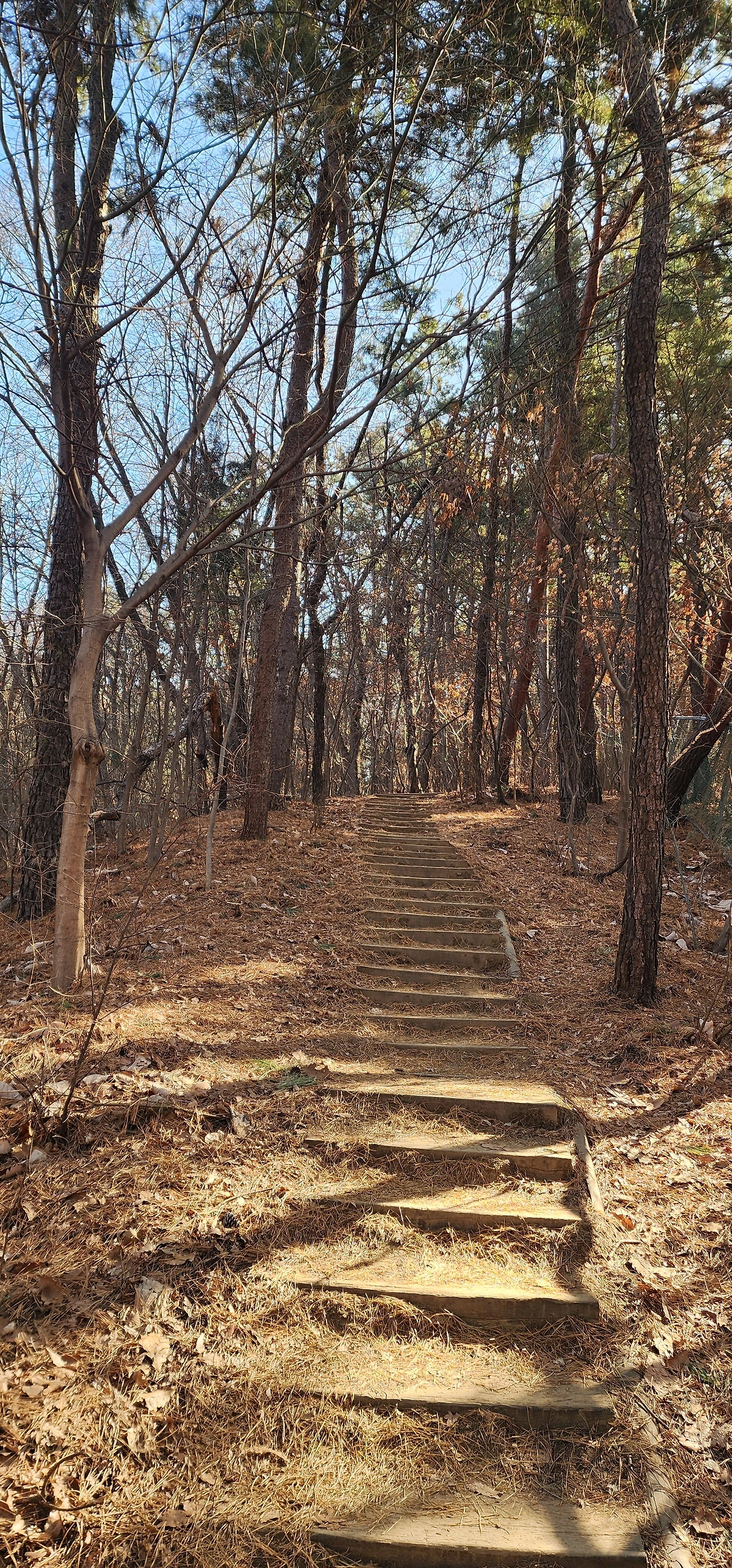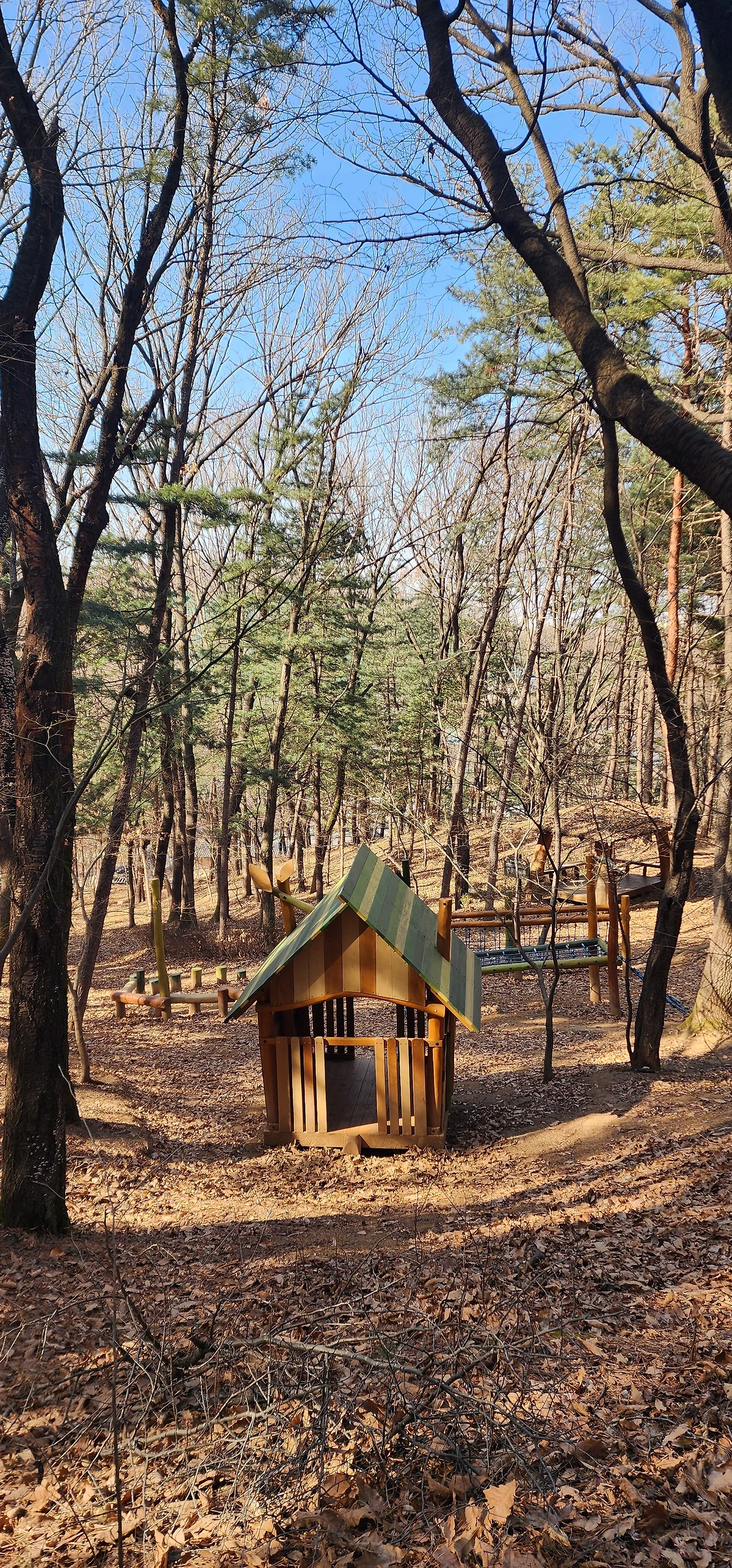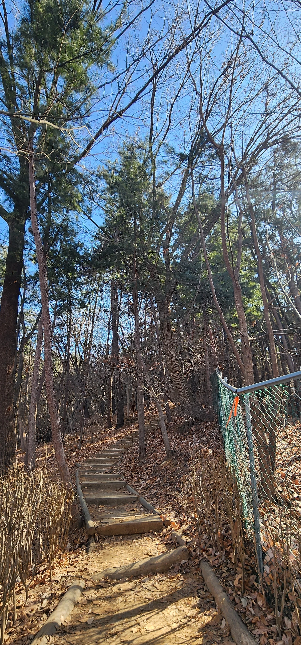 안국사 정문 앞에서 걷기 시작하는데 서울둘레길과 겹친다. 오늘은 계단의 낙엽은 가을인데 얼굴을 스치는 바람은 겨울이다. 다행히 눈이나 얼음이 없어 운동화로도 걷기에 불편하지 않다. 서울둘레길 안내를 알리는 표시들을 지나며 계단을 오르면 관악산 휴게트리 전망대가 보인다. 추운 겨울이라 스산해 보이지만 여름에는 그늘을 제공하는 쉬기에 적합한 시설이다. 서울둘레길을 걸으면 비슷한 전망대를 몇 군데서 만날 수 있다. 전망대를 지나 안국사 뒤편의 산책로를 계속 걷는다. 그리고 서울둘레길과는 헤어진다. 낮은 둔덕을 한 번 더 지나면 놀이터인가 하는 시설들이 보인다. 유아숲체험원이다. 날이 추워 아이들이 없다. 유아숲체험원을 지나 계단 몇 개를 내려오니 짧은 코스가 마무리다.