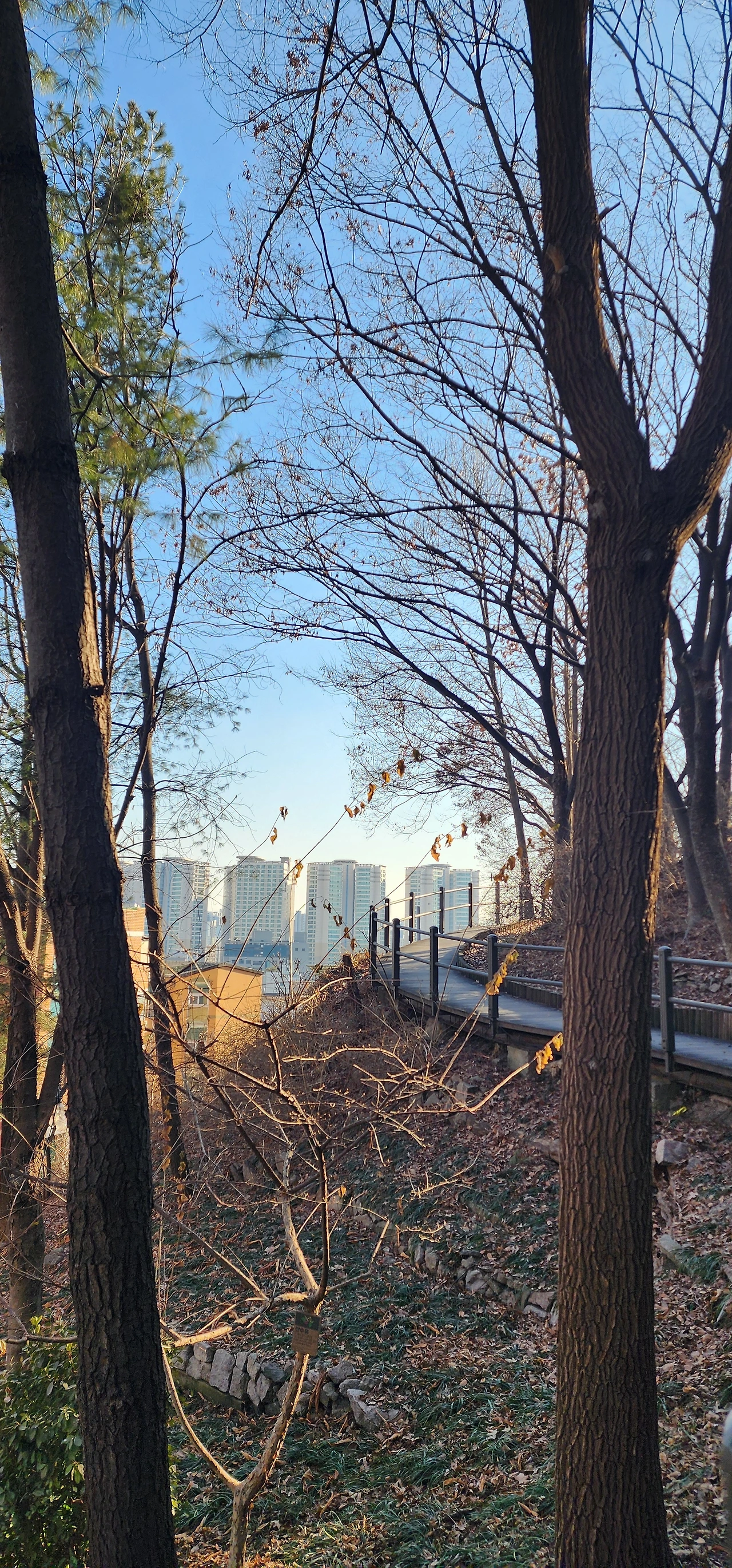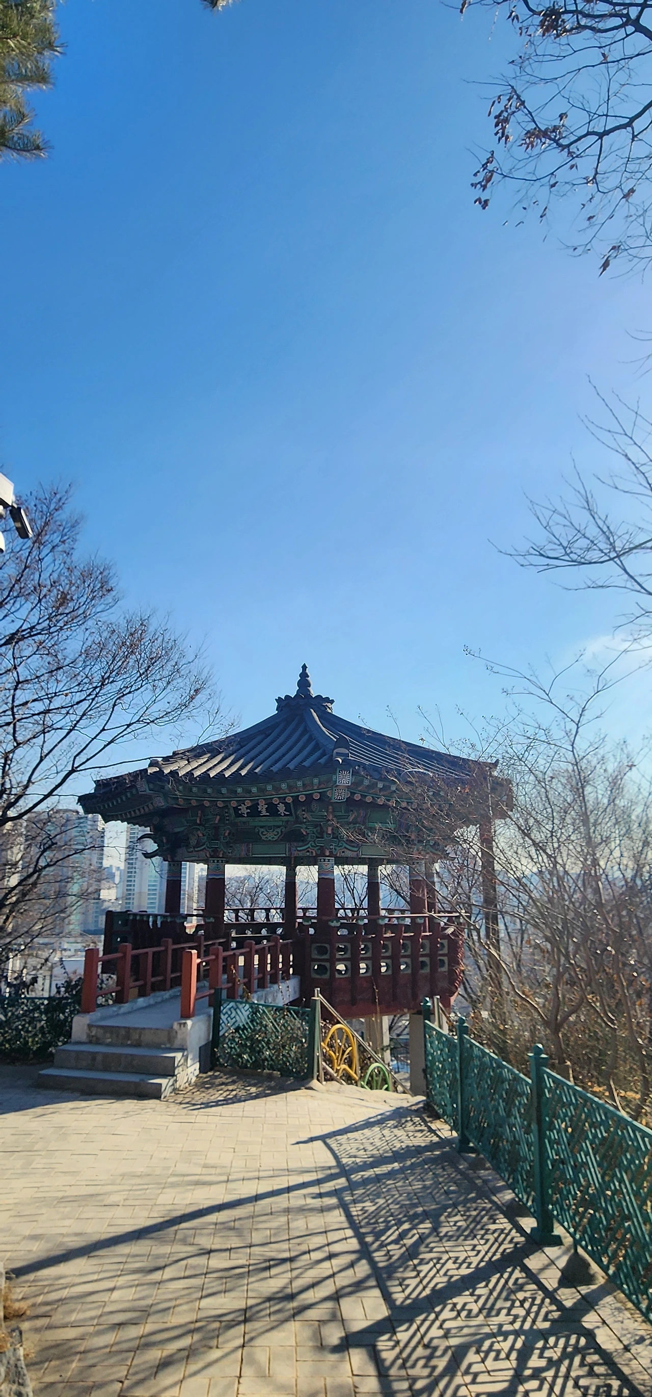 동묘는 동관왕묘이다. 코스는 동묘 둘레를 걷고 대로를 건너 숭인동 골목을 오른다. 경사가 심한 골목에 큰 사찰이 보인다. 골목이 가팔라서 사찰은 더욱 크게 보인다. 대한불교 관음종 총본산인 묘각사다. 묘각사를 지나 골목으로 오르며 왼편으로 입구를 찾아 동망정이 있는 숭인근린공원으로 올라야 하는데 입구를 놓쳤다. 그래서 조금 우회하여 동망정까지 걸었다. 동망정의 가파른 계단을 올라 도심을 구경하며 휴식을 가져본다.