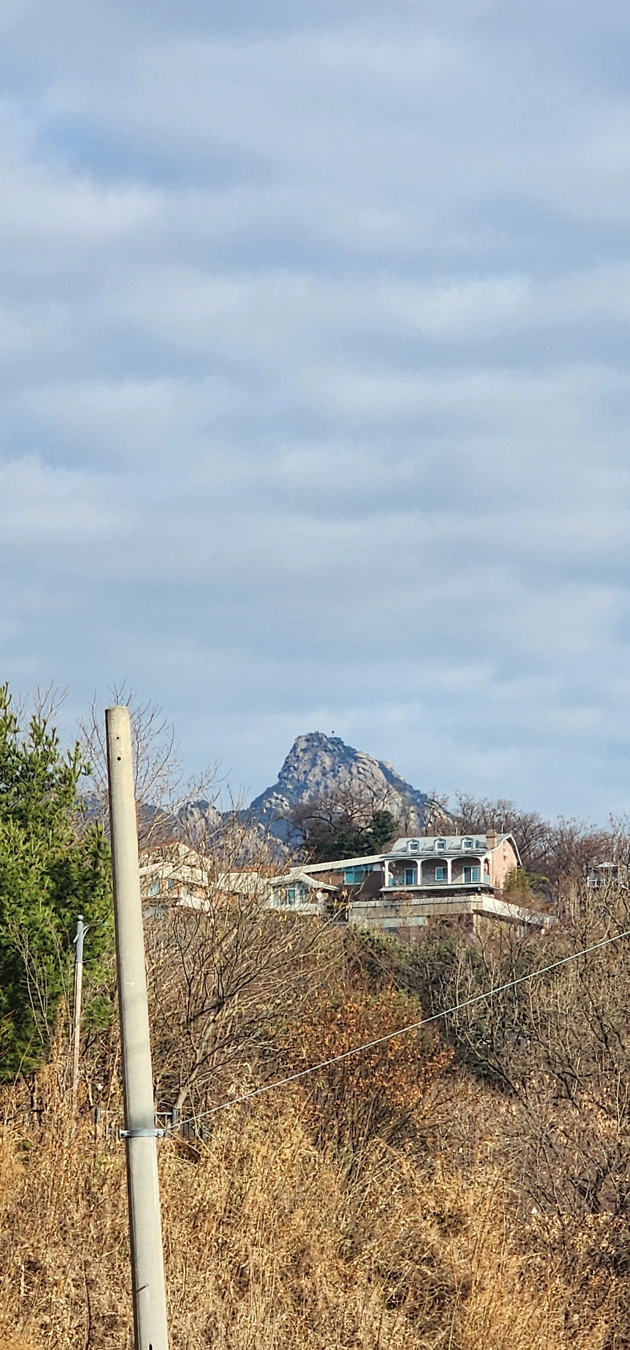 코스 중에는 여기가 정상, 북한산 능선이 나무 뒤에 숨었다.