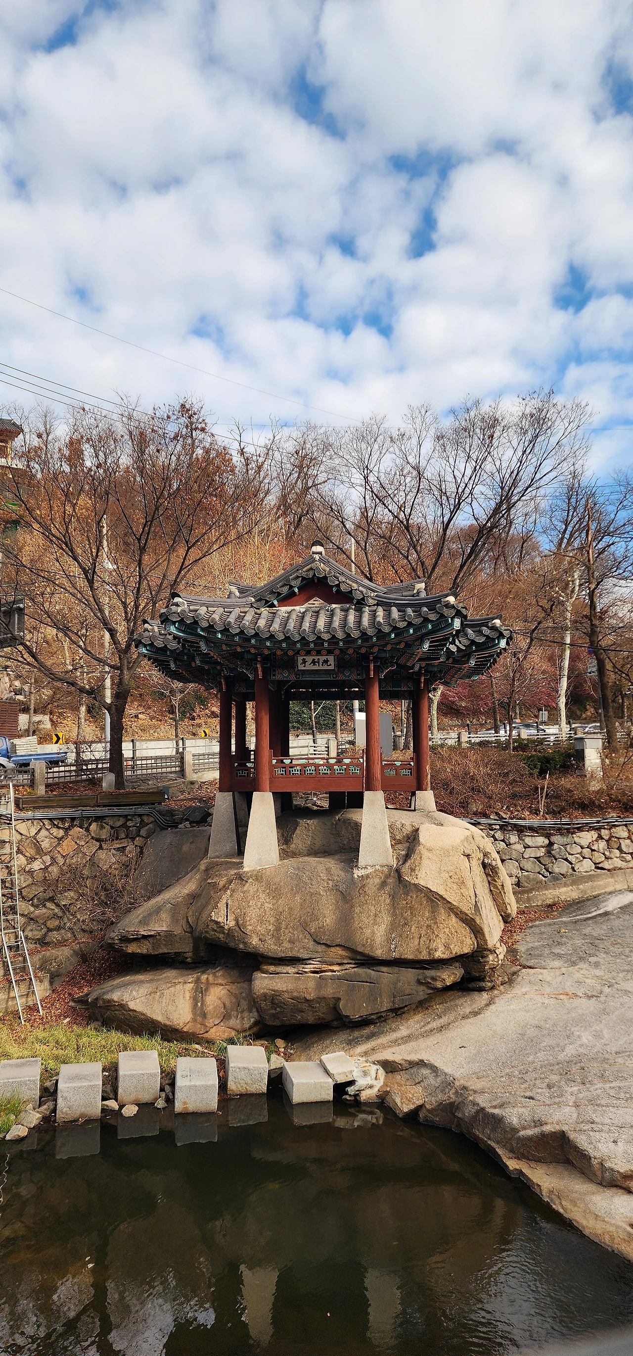 김달진미술자료박물관을 지나면 홍제천 너머의 언덕 위에 소림사가 보인다.