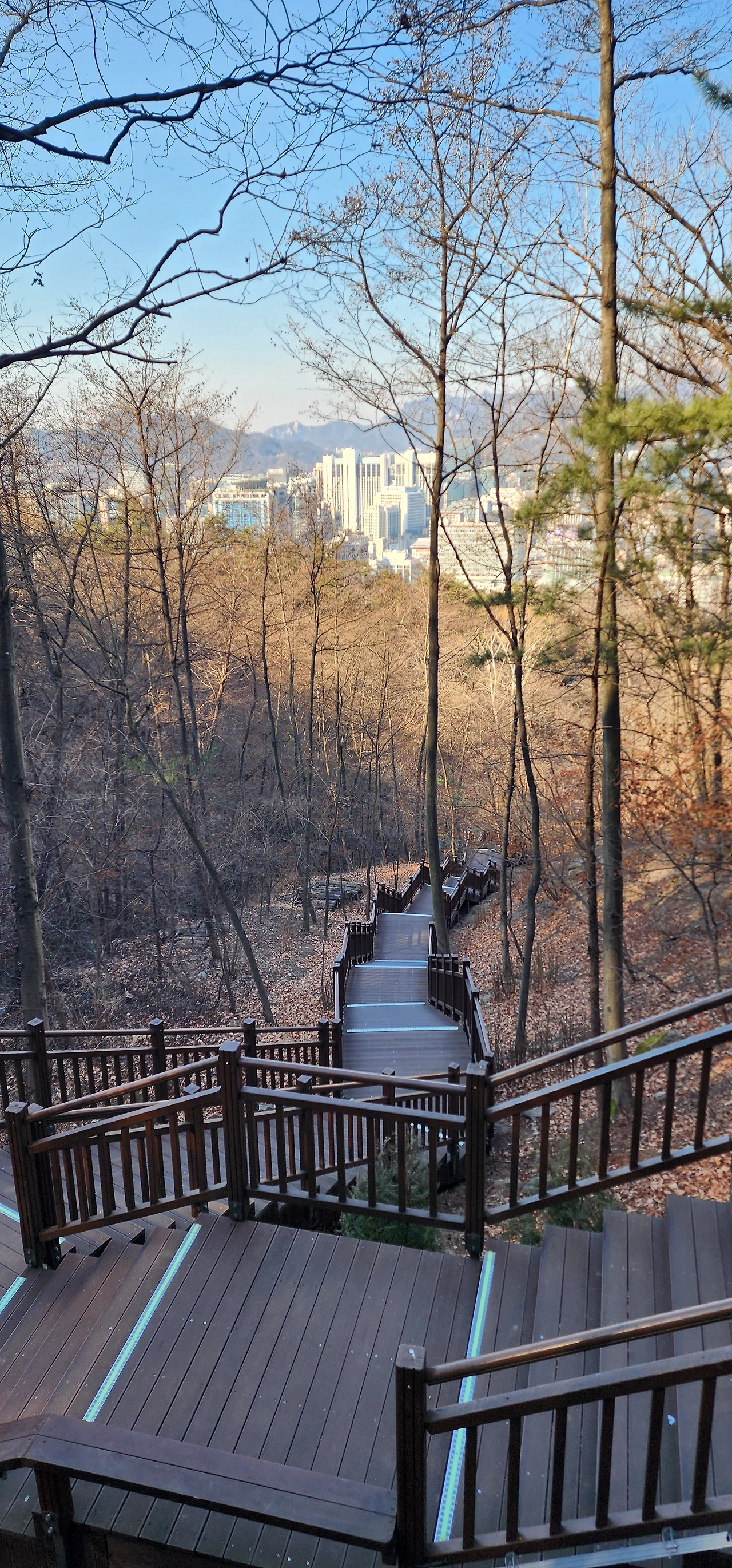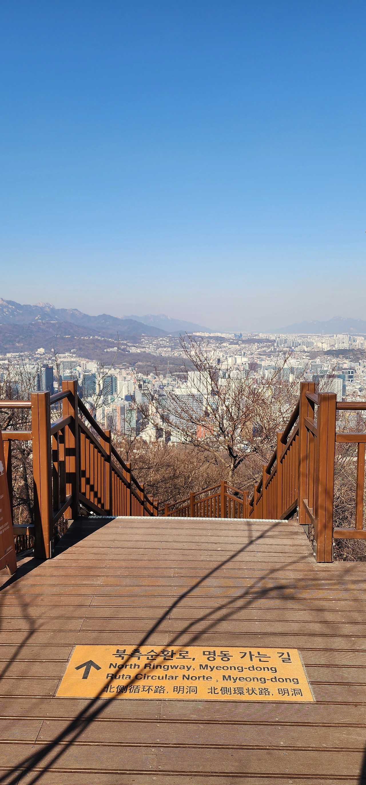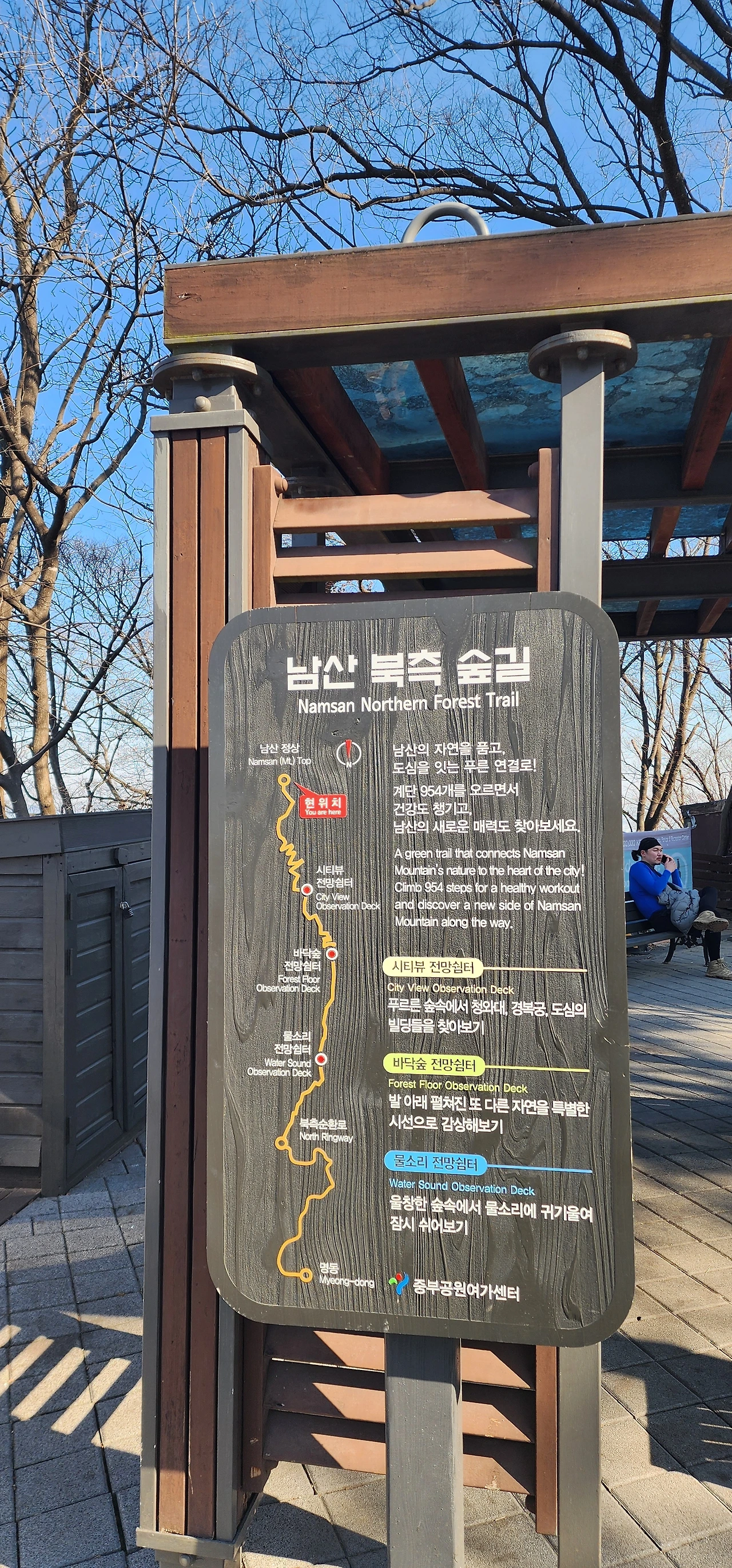 남산하늘숲길과 남산북측숲길을 걸으면 남산을 넘는다. 서울역에서 출발하여 남산도서관 앞에서 시작하는 남산하늘숲길을 걸어 남산 정상에 오른다. 남산타워가 있는 남산팔각광장에 서울의 중심점 옆에 있는 명동역 방향의 계단이 남산북측숲길이다. 케데헌 덕분에 늘어난 외국인 관광객들이 이제 다양한 방법으로 남산에 오르내릴 수 있어 보인다.