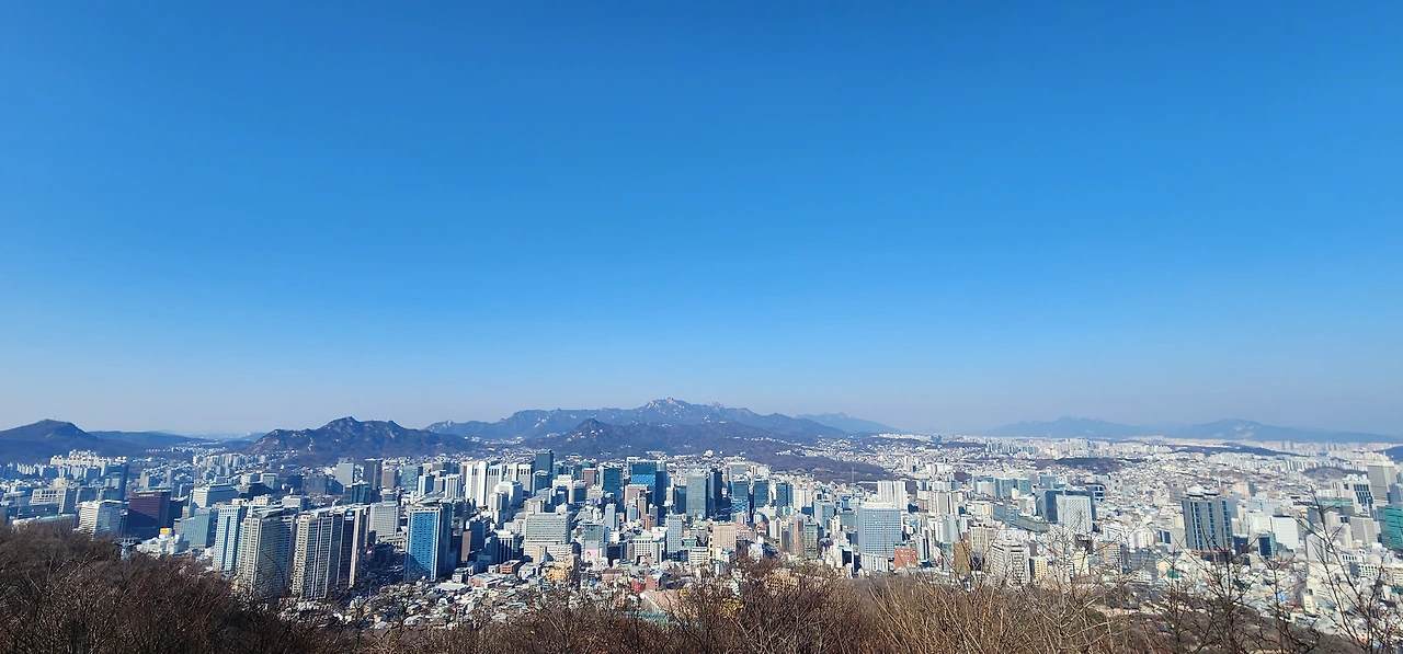 오늘 걷기의 출발은 철거 중인 서대문고가 앞에서였다. 순창터, 순화근린공원, 팔홍문터, 칠패시장터가 있는 염천교를 지나 서울역에 도착했다. 지하도를 지나 남산타워를 바라보며 남산을 오르기 시작했다. 동자동 골목을 걸어 잠시 커피 한 잔하고 엘리베이터를 타고 남산도서관 앞에 도착했다. 소월정원에는 남산하늘숲길 안내가 보인다. 2km 조금 넘는 남산하늘숲길에서 1.45km는 무장애코스다. 하늘숲길에는 바람전망다리, 하늘전망대, 노을전망대 등이 있는데 전망대가 모두 8개라 한다. 무장애코스가 끝나면 나무데크로 이어진 계단으로 버스정류장까지 오른다. 다시 남산타워 아래까지는 경사진 짧은 도로를 오른다. 남산타워와 팔각정이 있는 남산팔각광장에는 숨겨진 '서울의 중심점'이 있다. 광장 한편에는 목멱산(남산의 옛 이름) 봉수대도 있고 많은 사람들의 사랑을 지키려는 러브락(사랑의 자물쇠)도 볼거리다. 광장의 전망대에서는 북한산, 북악산, 안산, 낙산 그리고 멀리 도봉산과 불암산이 보인다. 강북 도심과 멀리 청와대까지 강북 도심이 한 장의 그림으로 들어온다. 어제는 인왕산에서 야간서울을 구경했고 오늘은 남산에서 주간서울을 구경한다.
