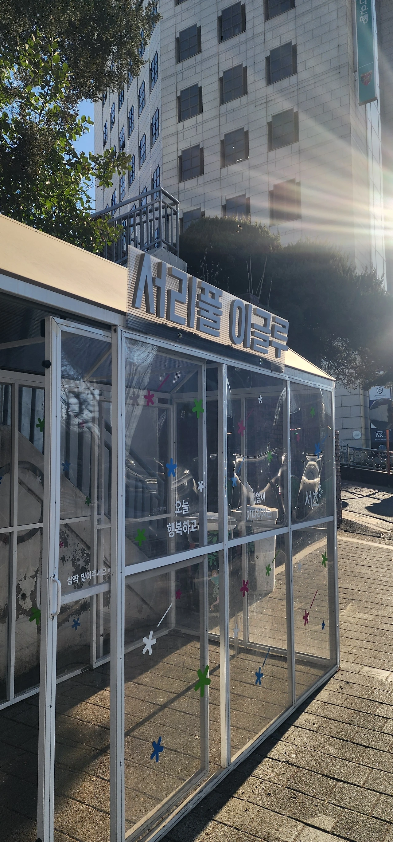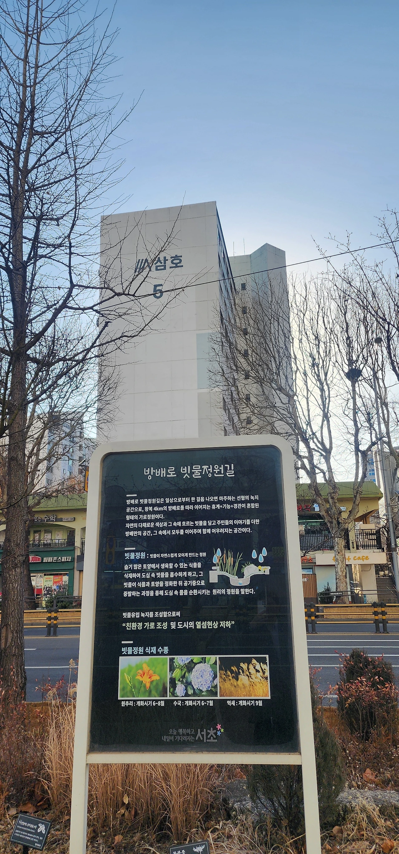 오후에는 함지박사거리에서 녹화를 마치고 고속터미널역까지 걸었다. 방배로에는 방배사이길과 방배로 빗물정원길이 있다. 고속터미널역 방향으로 오른쪽으로 돌아서니 사평대로다. 일일만보를 달성하면 지나는 버스의 유혹에 시달리게 된다. 다행히 오늘은, 반복되는 사평대로에서 버스를 타라는 유혹을 뿌리치고 걸었다. 이수고가차도가 끝나는 지점에 사평대로 건너로 심산김찬숙기념관과 서초소방서가 자리 잡고 있다. 그리고 수십억 원이나 되는 비싸다는 아파트가 가득하다. 서래마을 앞을 지나가보니 버스 정류장에 설치된 서리풀이글루가 보인다. 여름에는 이름이 멋지지만 겨울에는 추워 보인다. 반포대로를 만나는 사거리에 서래공원이 있다. 공원 앞에서 횡단보도를 건너니 복잡한 고속터미널역 출구가 보인다.