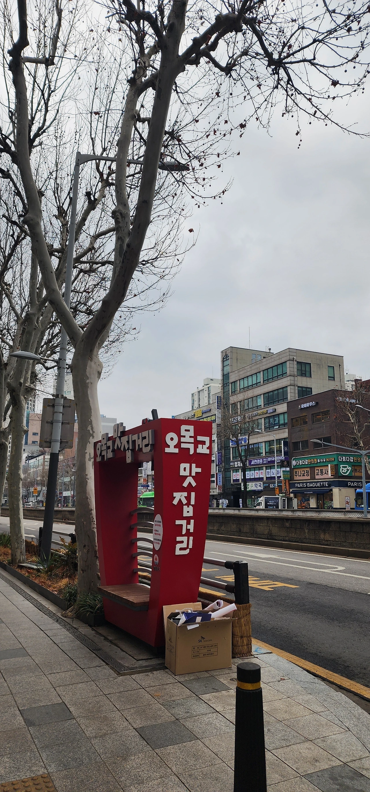 아트스퀘어를 지나면 오목로를 만난다. 길 건너 목동가온길이 보인다. 왼쪽으로 돌아서니 빨간색의 오목교맛집거리 조형물이 눈에 들어온다. 조형물을 지나 5호선 오목교역에서 마무리했다.