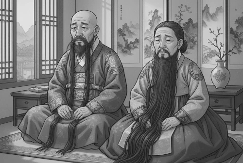 잠시라도 한눈을 팔라치면, 남편의 코털은 이미 가슴까지 길게 자라 있었고, 부인의 턱수염은 배꼽에 닿을 듯 축 늘어져 있었다.