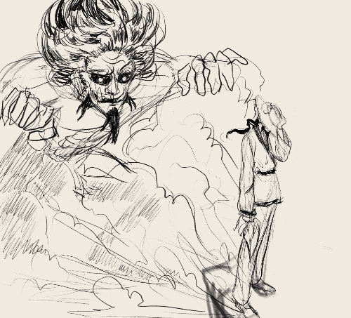 패랭이를 쓴 사내는 만족한 미소를 지으며 패랭이를 벗어 구름이 깔린 허공으로 던졌다. 그와 동시에, ‘쩌억!’ 공기의 경계가 갈라지는 듯한 소리가 들렸다. 그의 몸이 거대하게 팽창했다. 뼈와 살이 터져 나오는 기세로 부풀어 오른 그는 순식간에 나룻배를 발밑의 나뭇잎처럼 보이게 하는 압도적인 존재가 되었다.