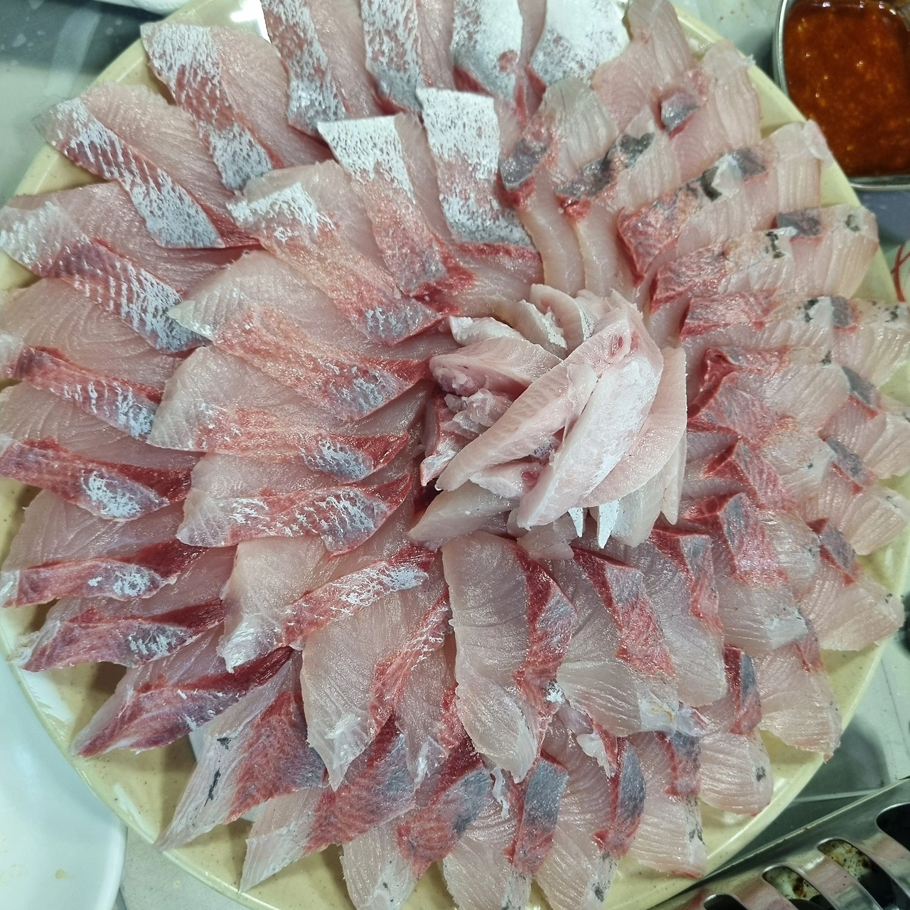 조사님이 나한테 낚시 선수란다. 기분은 좋다. 뭘요 어복이 있어 잡은 겁니다. 웃어넘겼다. 낚시하신 지 오래되신 듯하네요 하신다. 맞습니다. 방어 여섯 마리에 삼치 두 마리 오늘 낚시는 끝이다. 한 분이 꽝 쳤다. 바로 남편이다. 괜스레 미안했다. 나만 잡았으니 말이다. 3시에 끝나고 돌아와 펜션에서 선장님 부부 우리 집 식구 딸. 사위. 손녀가 함께 오늘 잡은 방어로 파티했다. 난 먹지 않았다.