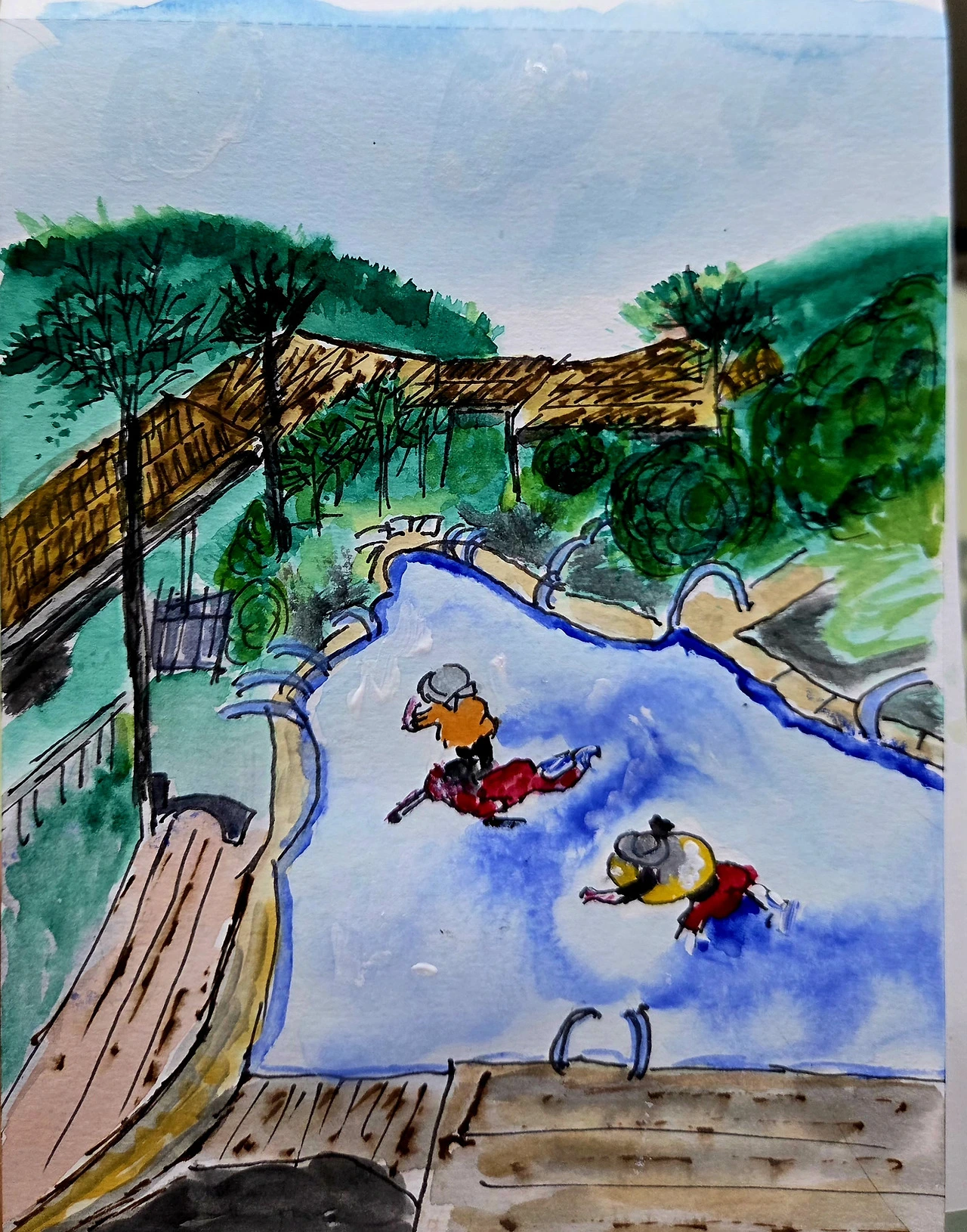 행복이 잔잔한 수영장에 퍼지고 있었다.