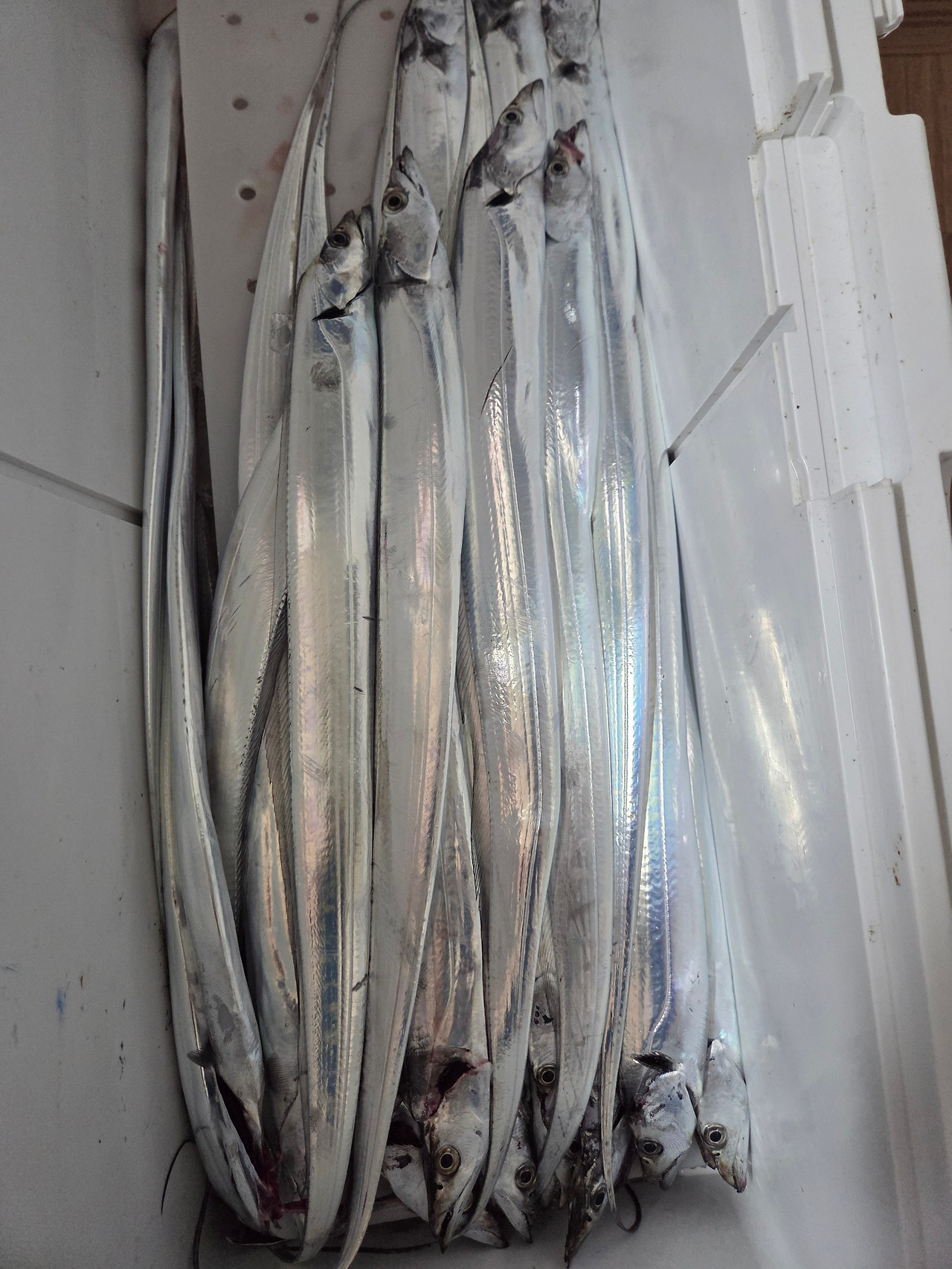 그 뒤로도 선장님은 몇 번의 포인트를 옮겼다. 그러나 갈치는 나오지 않았다. 늦게까지 하려 했지만, 조사님들이 하나둘씩 낚싯대를 거두었다. 나도 그만 거두었다. 오늘 잡은 갈치는 40마리 남짓 잡은 것 같다.