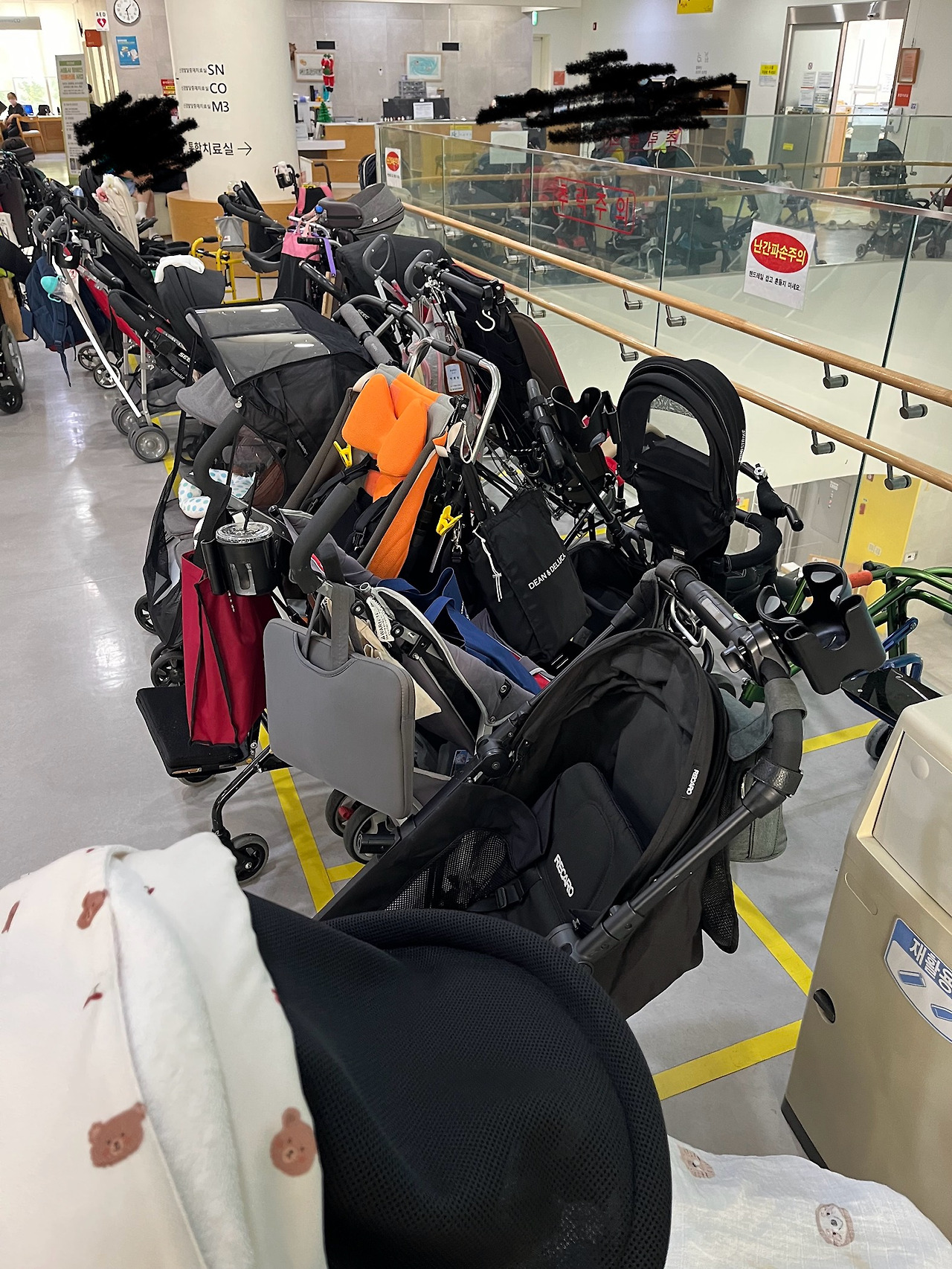 2층으로 올라가면 유모차와 휠체어가 30대가 세워져있다.