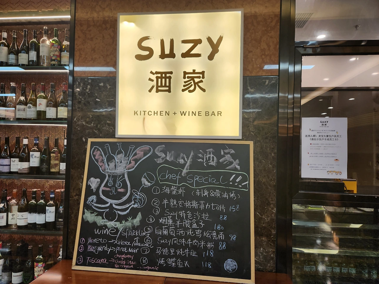 <수지>라는 와인바에 갔는데 인테리어가 깔끔했다. 사장님은 나보다 훨씬 어려 보이는 광저우 출신 젊은 여성분이었는데, 중국 전국에 여러 개의 식당을 운영하고 있다고 했다. 너무 예쁘고 세련되어서 중국 느낌 없네 했는데, 아니나 다를까, 서비스로 주신 요리가 중국식 오이무침이어서, 오이무침에 화이트와인을 마시며 속으로 외쳤다. 역시! 반갑다 베이징!!