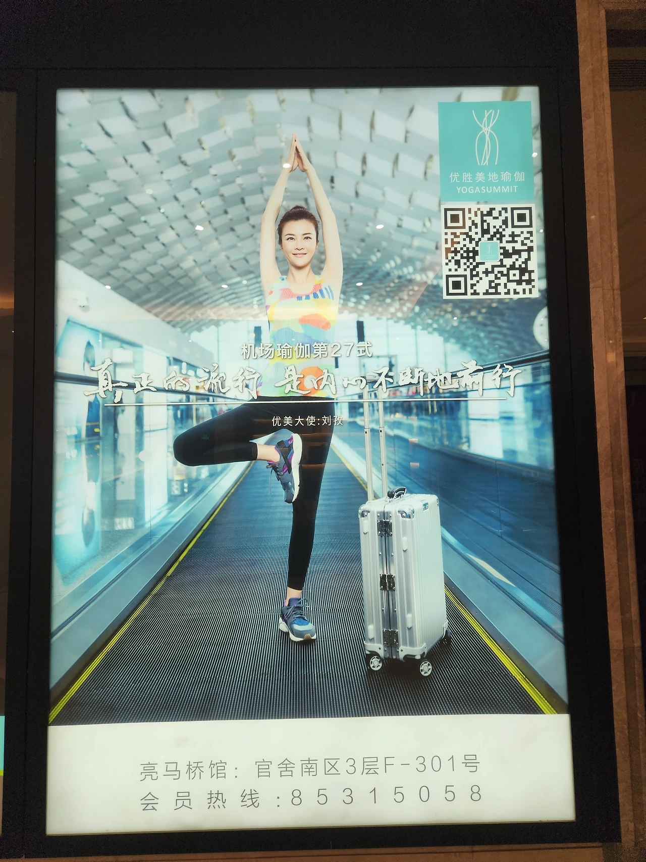 요가로 전업을 하려다 보니, 어딜 가나 요가가 보인다. 북경에도 요가의 흔적은 보였다. 대사관 근처 쇼핑몰에 나무자세를 한 호리호리한 여성의 사진과 함께 "나의 내면으로 여행을"이라는 문구가 새겨진 요가원 광고가 있었다. 아디다스 매장 쇼윈도에는 제일 난이도가 높은 핸드 스탠드 자세를 한 마네킹이 있다. 여하튼 중국에서도 요가가 어느 정도 자리 잡아 가르치는 사람도 있고 배우는 사람도 있구나 하는 것을 알게 되었다.