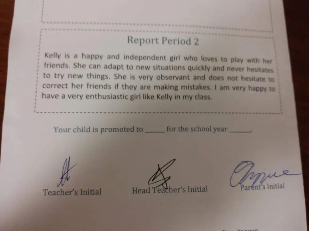 켈리는 미얀마에 스며들어 미얀마 키드로 자라났다. 유치원에서 매일 아침 부르는 미얀마 애국가를 외워서 부르기도 했었고, 유치원 체육대회에서 누구보다 열심히 줄다리기에 참여하기도 하고, 세계 각국 전통복 패션쇼에서 예쁜 한복을 뽐내기도 했다. 조금 지나더니 미얀마 보모와 미얀마식 영어로 대화하기 시작했다.