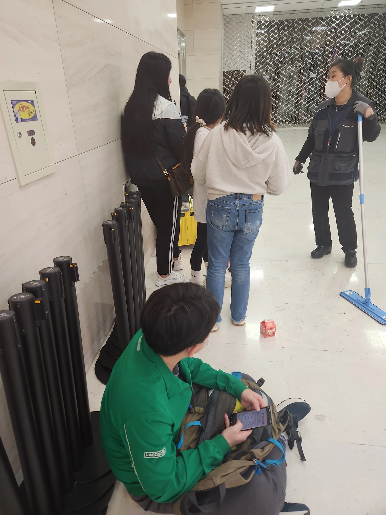 더현대 지하2층 입구에 도달하니, 직원들이 출근하고 있었다. "앗, 이 줄이 아닌가벼" "아이브 앨범 웨이팅은 어디서 줄 서는 거죠?" 약간은 어색하지만 용기를 내어 물어보니 청소 아주머니께서 친절하게 나를 데려다 주셨다. 여기 첫 줄에 줄 선 엄마와 두 아이는 오늘 학교 수업도 째고 오로지 럭드만을 위해 이 곳에 왔다고 했다. 그리고 내 앞엔 뭔가 오타쿠스러운 아재 한 분이 계셨다.