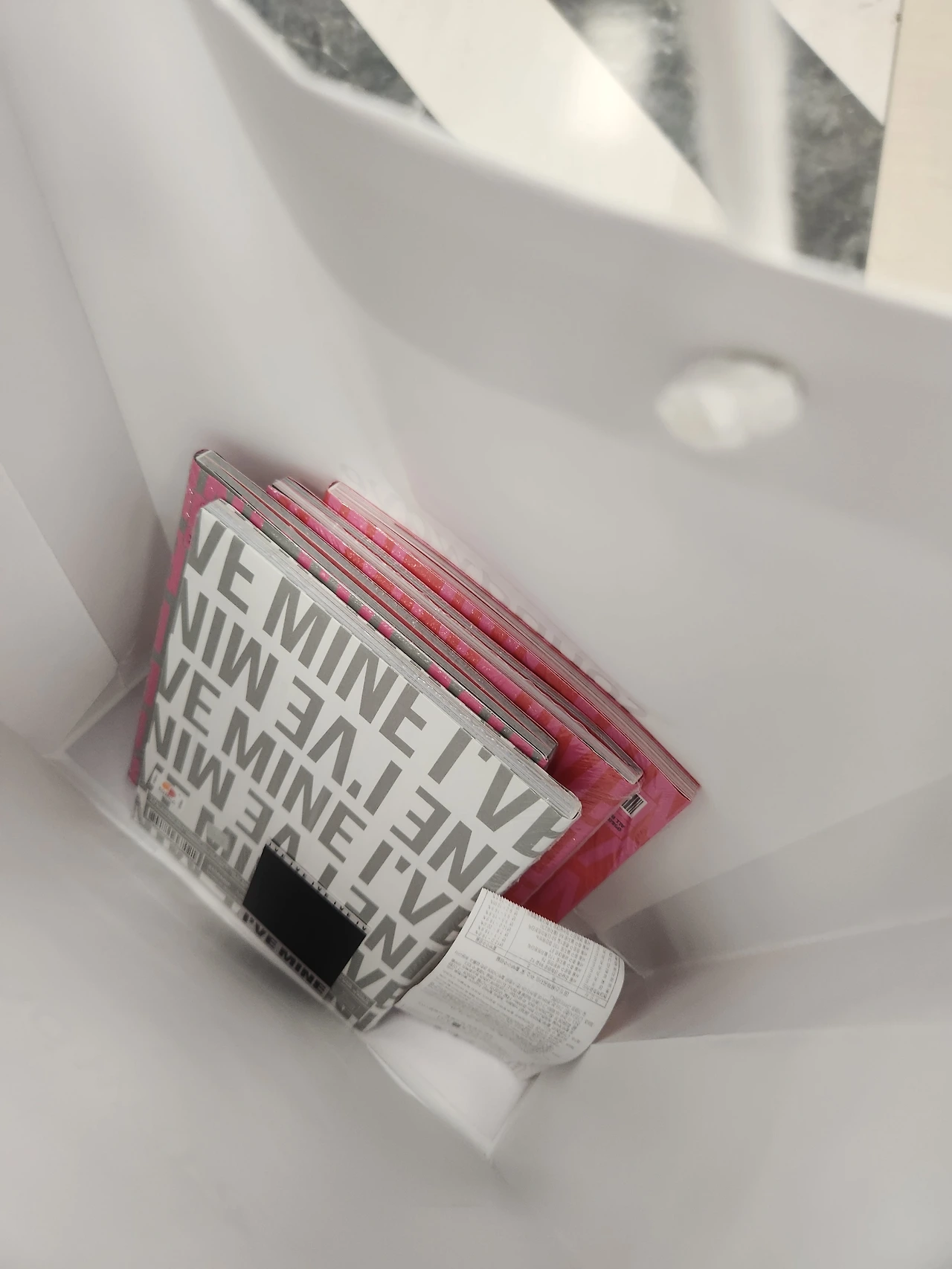 드디어! 6번의 차례가 왔고, 나는 원래 통이 컸던 것처럼 아이브 앨범 한 셋트 주세요! 라고 했다. 정말 예술적인 상술인게 앨범 4개가 한 셋트여서, 한 셋트를 사야만 폴라로이드 포카 하나 주고, 럭드 기회를 4번 준다. 보니까 앨범 출시 때 럭드를 통해 얻은 포카는 희소성을 가지고 있어서 포카 시장에서 높은 가격에 거래되는 것 같다.