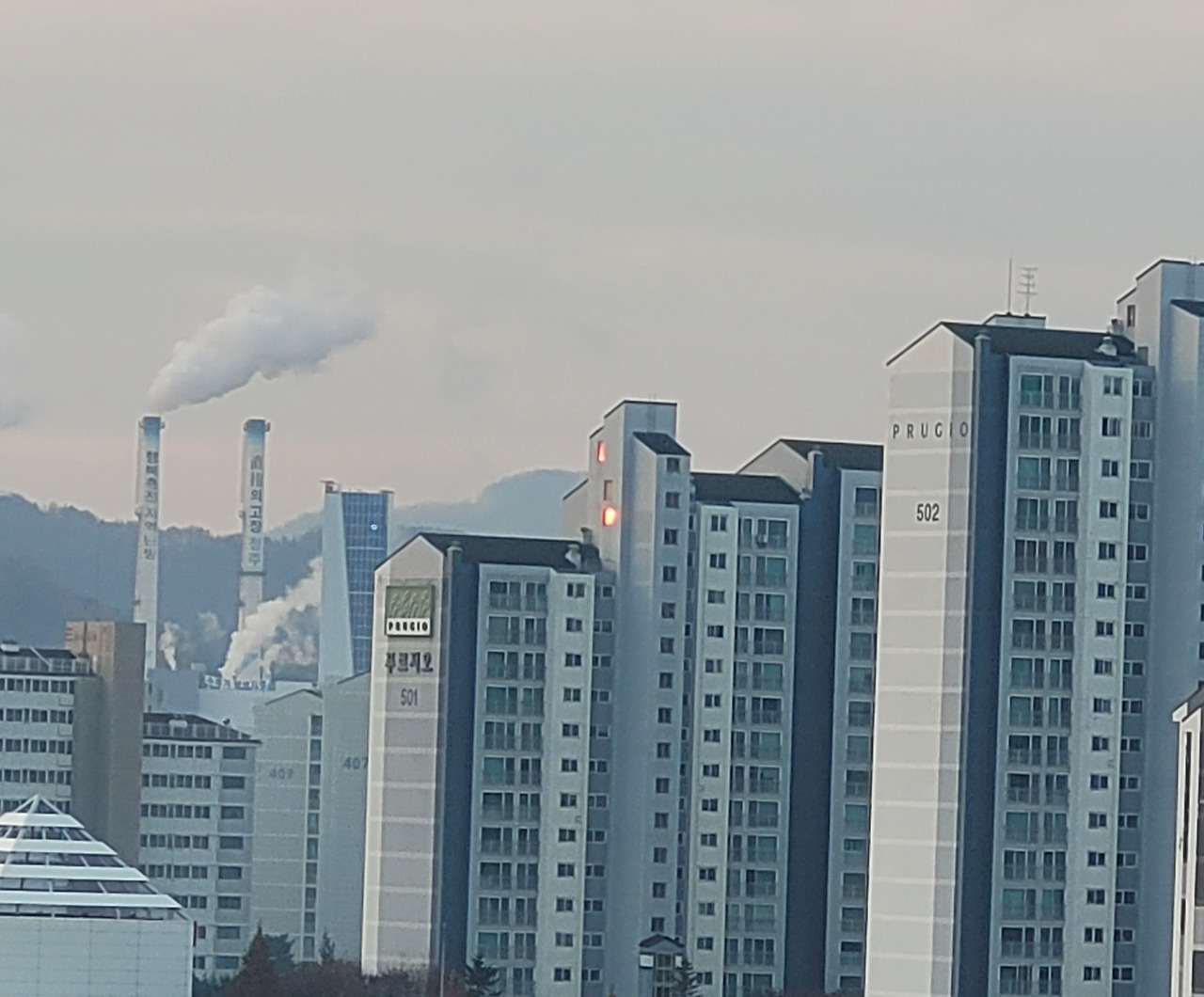 멀리에 있는 아파트 창에 아침 햇살이 반사되어 내 시선을 사로잡는다.