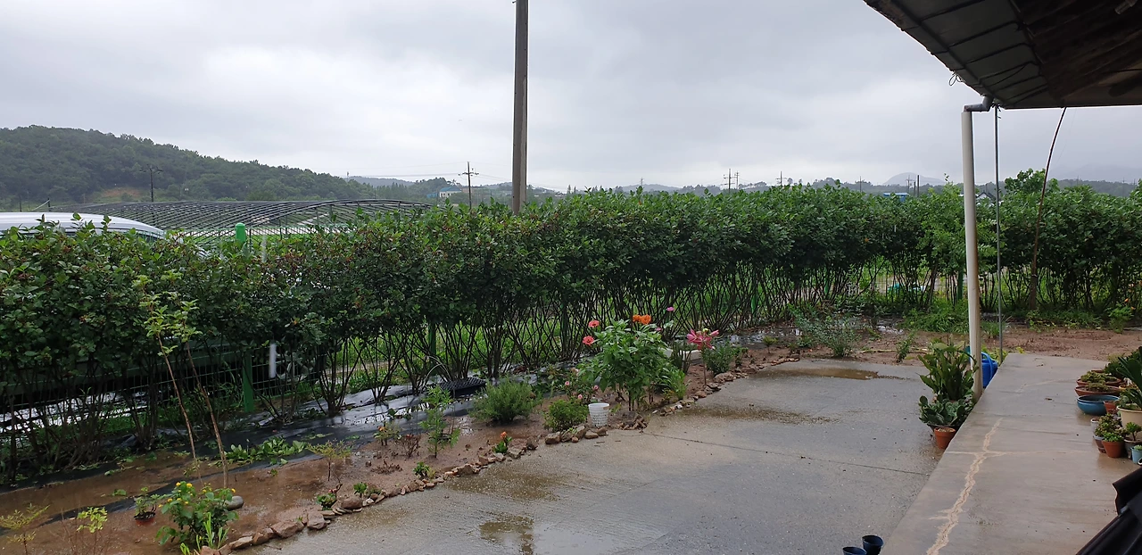 비오는 날의 시골 집 풍경