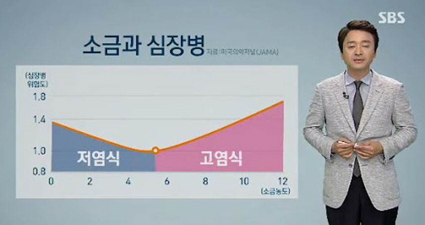 “이미 해외에서도 다 알려진 얘기이긴 한데, 나트륨 섭취량과 사망률의 관계가 직선으로 우상향하는 것이 아니라 J모양을 띱니다. 나트륨 섭취량이 높을수록 사망률이 높아지는 것은 아니고 위험도는 높아지지만, 반면 나트륨 섭취량이 지나치게 적을 때도 위험도가 높아진다는 것이죠. 그러니 소금으로 적당한 양의 나트륨을 섭취하는 게 필요하고 지나치게 억제하면 오히려 건강에 해가 된다는 것입니다. 물론, 과다 섭취가 해로운 것은 이미 밝혀진 일입니다.”