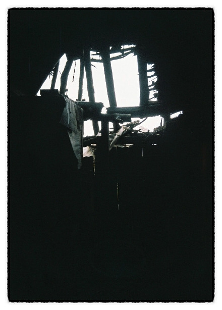 어머님 부엌의 한쪽 지붕이 이렇게 내려앉았다.