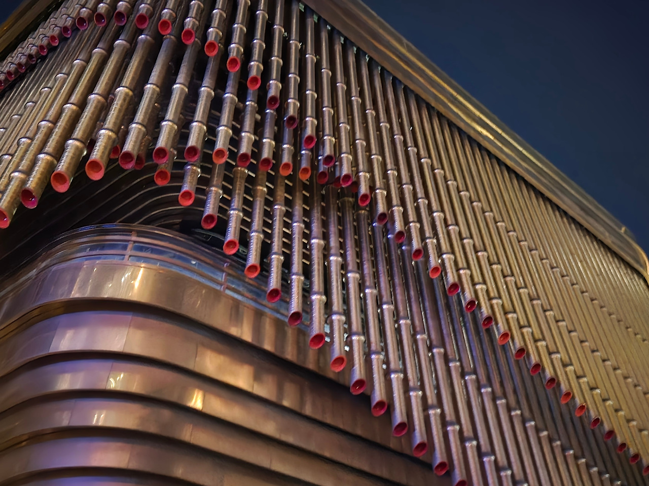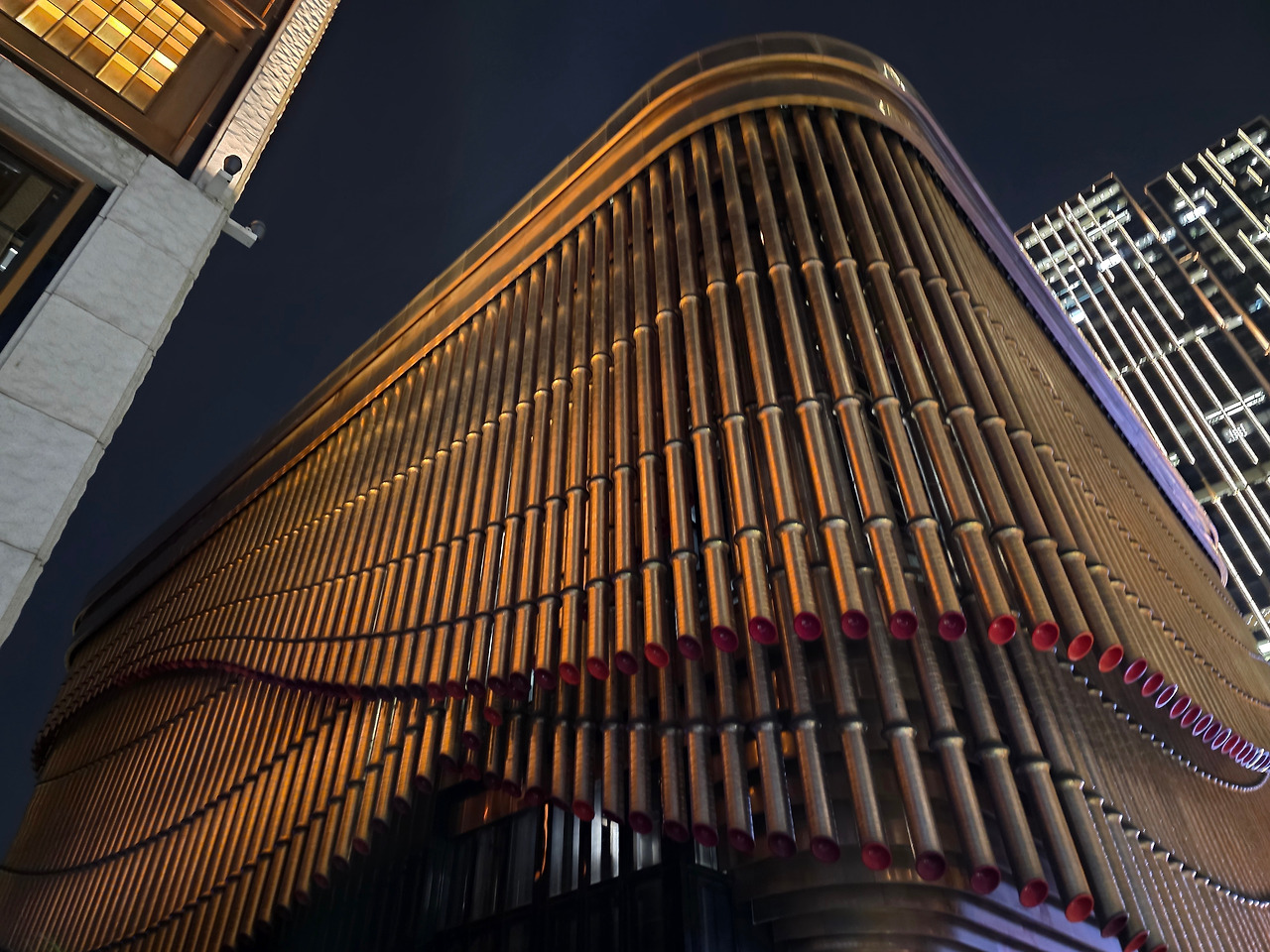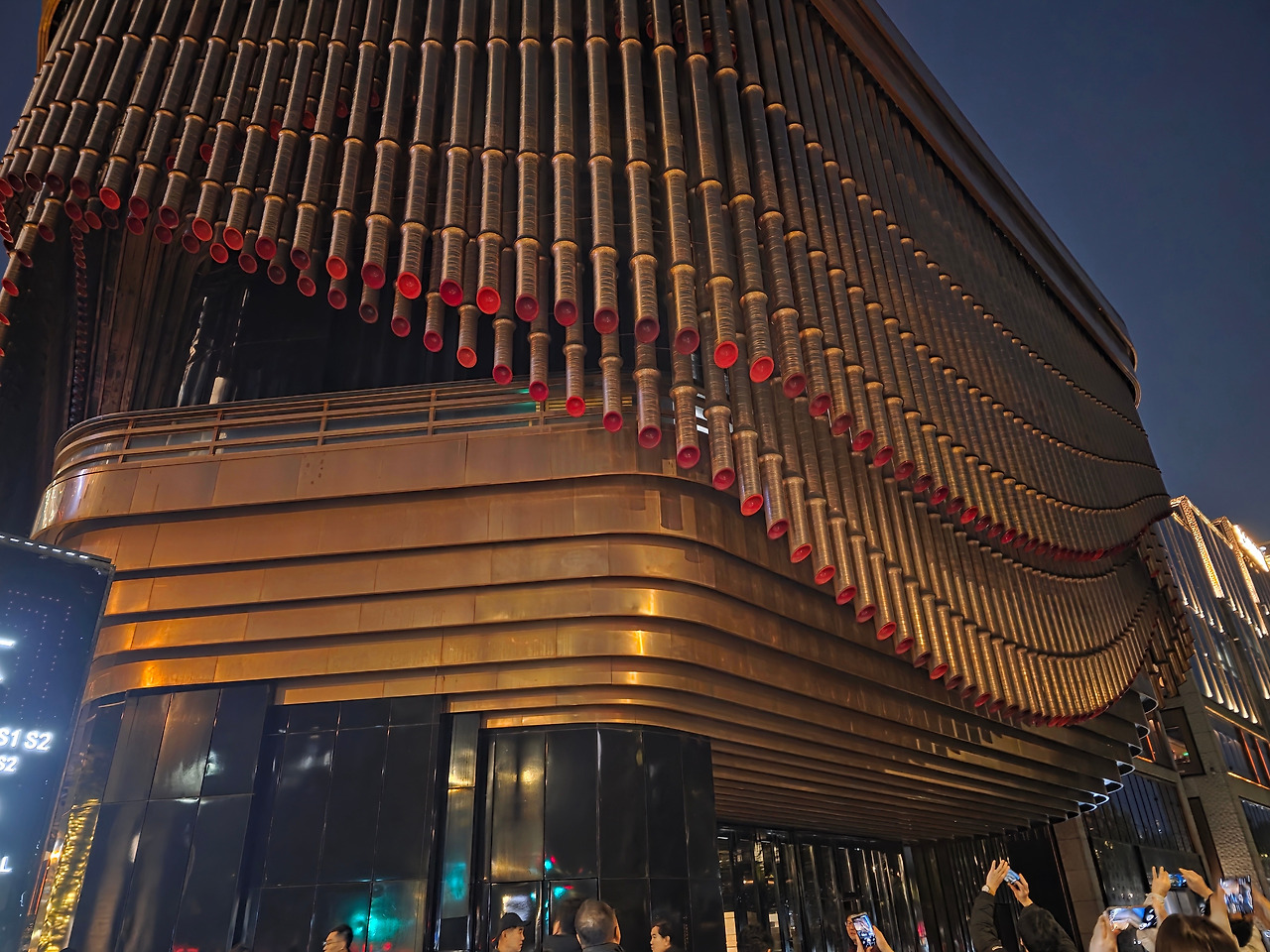 이 건물의 하이라이트는 세 개의 층으로 되어 있는 골드 회전식 커튼이다.