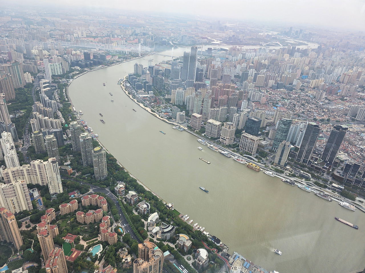 황푸강 줄기가 거의 다 보이는 듯. 와우!!