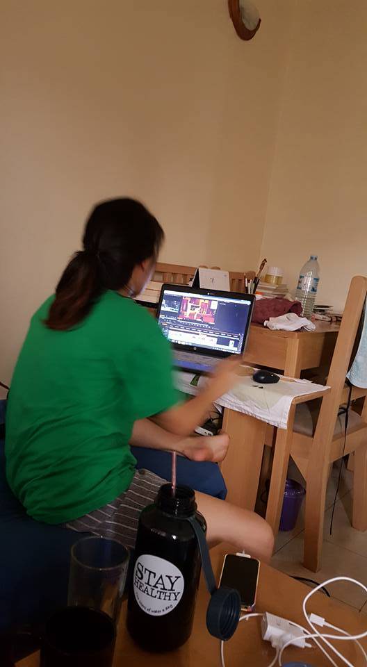 아침 부터 오후 3시가 넘게 까지 제자들 시범 영상 편집하고 있는 딸