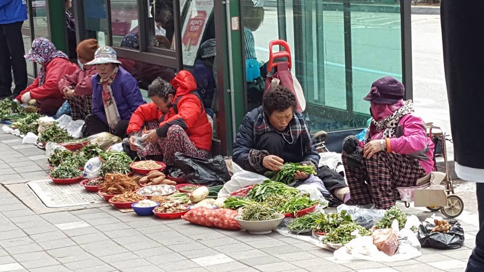 어르신들이 봄나물을 깨끗이 다듬어 소담 소담 담아놓고 팔고 계신다.