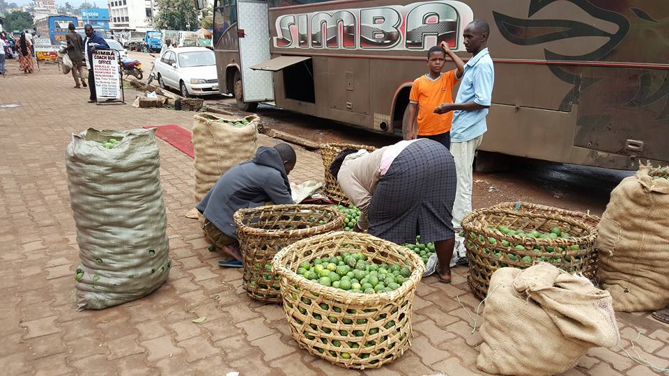 6. 방금 출하한 싱싱한 레몬을 파시는 분들. 정리 중인가 보다. 보시기 전에 얼른 찍자~ 저 뒤에 있는 버스는 국경을 넘어 '케냐 나이로비'로 가는 버스란다.