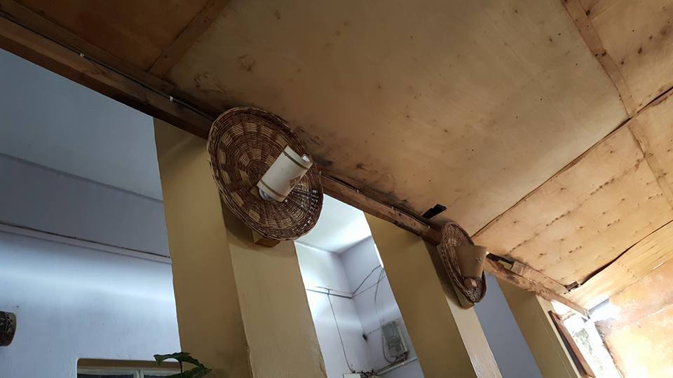 11. 우리나라 소쿠리가 전등 받침으로 걸려 있다.