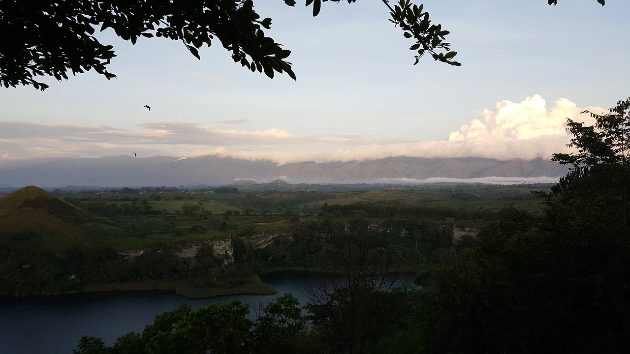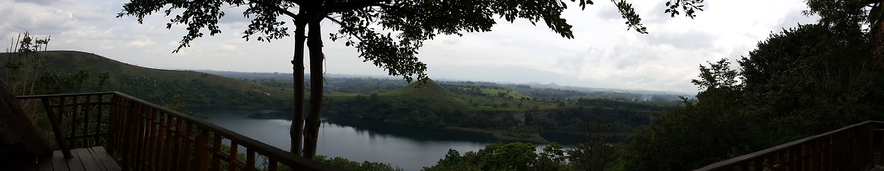 포트포탈 지역에 있는 차닝가 호수(Kyaninga Lake)를 앞에 둔 Kyaninga Lodge.