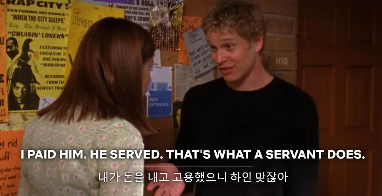 부잣집 도련님인 이 캐릭터는 본인이 두둑이 팁을 지불했으니 하인으로 대우해도 된다는 마인드를 가졌죠. 이것이 과거의 노예제도를 완벽히 탈피한 것이 진정으로 맞을까요? 고객-노동자 관계를 넘어 갑-을 관계를 형성하는 것이 옳을까요?