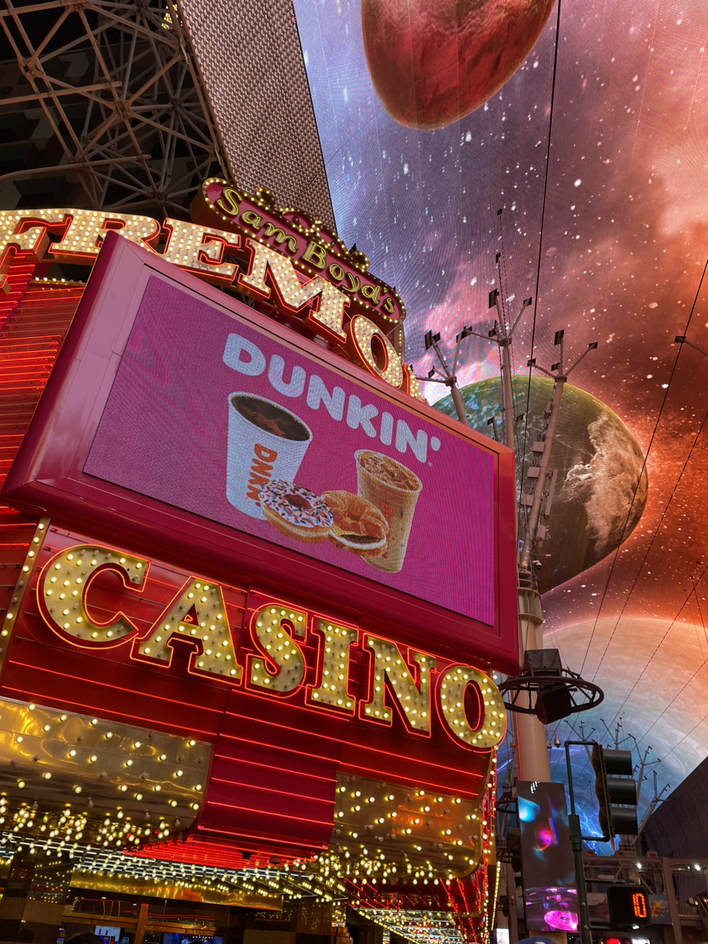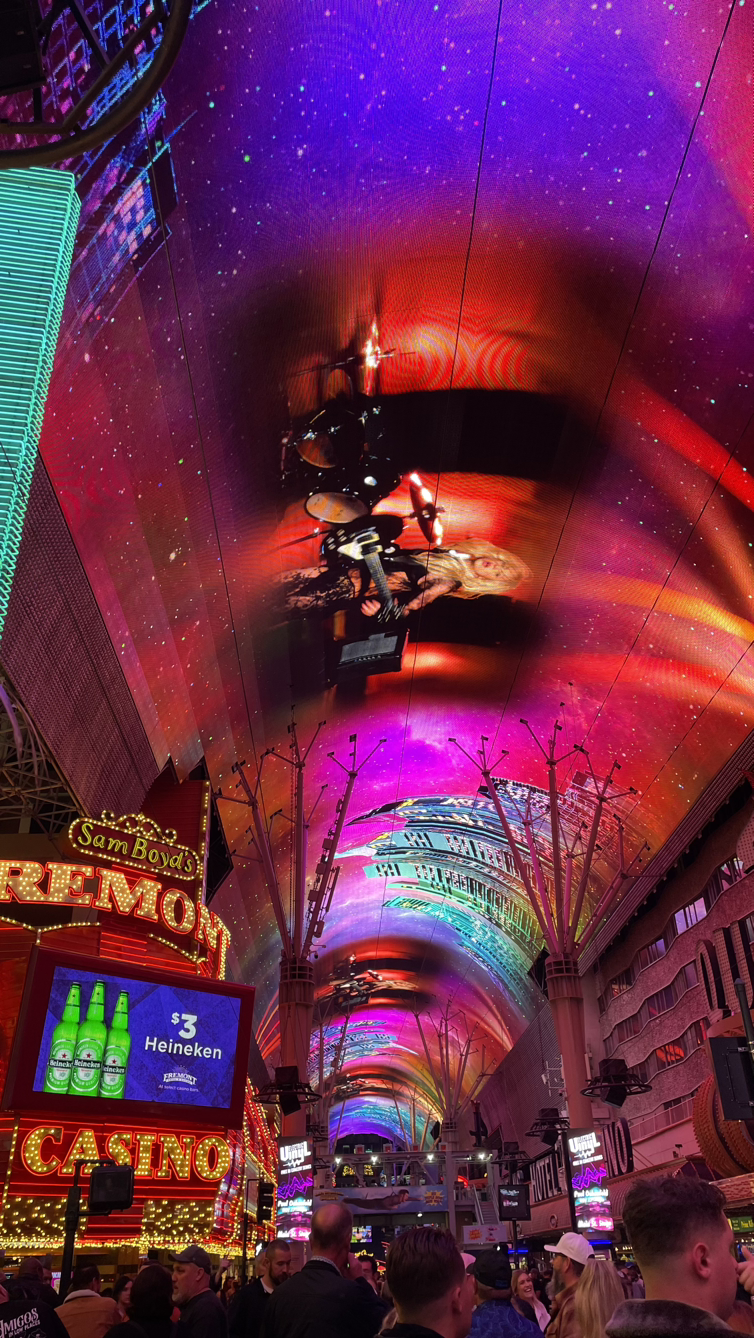 아웃렛에서 후다닥 쇼핑을 마치고(여러분 아웃렛 꼭 가보세요!!) 프리몬트 스트리트라는 라이트쇼를 보러 갔습니다. 굉장히 넓고 긴 street의 양 옆에는 식당과 카지노 가게들이 있고 천장에서 화려한 빛의 향연들을 볼 수 있었는데 너무나 밝은 빛 덕에 밤에도 미처 밤인 줄 모르겠더라고요.