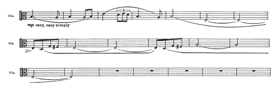 약 20여 분간 고요한 음향 가운데 이어지던《로스코 채플》은 종결부에 이르러 구체적인 형태의 선율이 등장하며 청자의 주의를 환기시킨다. 유대교 찬송가 형식의 히브리 선율은 외부로부터의 인용처럼 들리지만, 실제로는 펠드먼이 10대 시절 작곡한 선율의 재현이다. 이 선율의 등장은 작품 전반을 지배해 온 추상적 음향과 긴장 관계를 이루며,《로스코 채플》의 미학에 또 하나의 층위를 더한다.