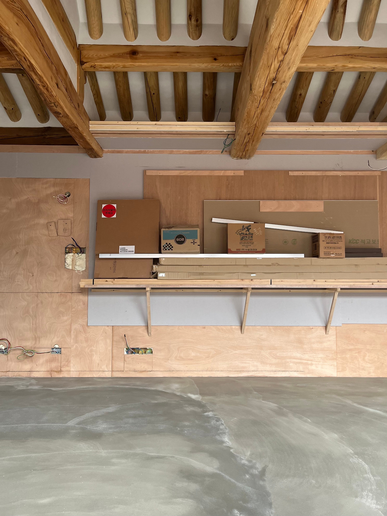 문득 다시 떠오르는 "한옥이면 아궁이 때는 거야?"라는 질문. 여러 사람에게 들었던 이 질문에 대한 답이 드디어 나왔다. 매끈하게 깔린 이 바닥안에는 보일러 배관이 있다.